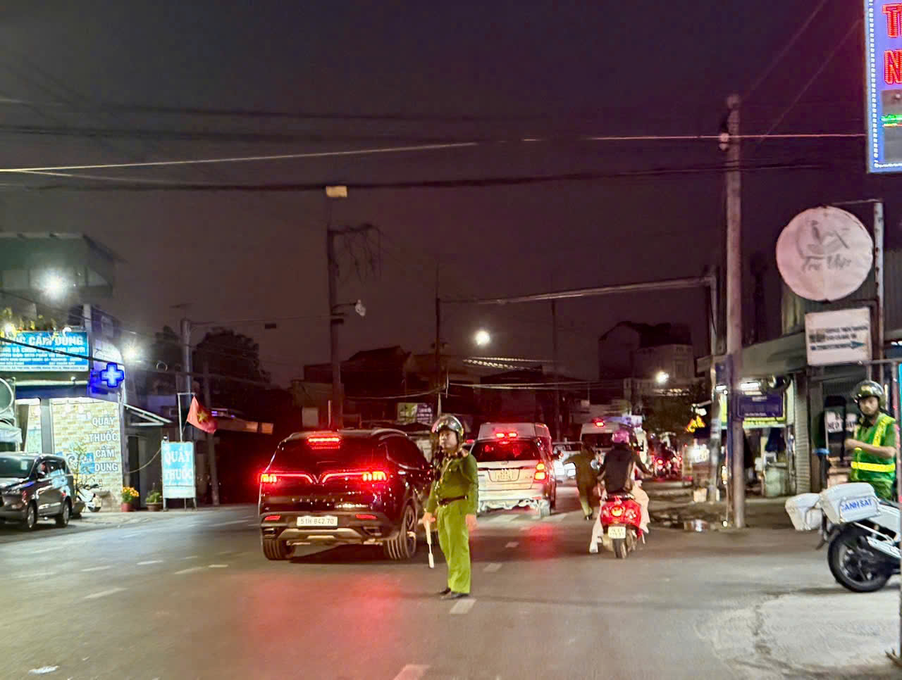 Hình ảnh lực lượng Cảnh sát trật tự Công an xã tăng cường điều tiết, phân luồng giao thông tối ngày 22/02/2026 (Mùng 6 Tết)