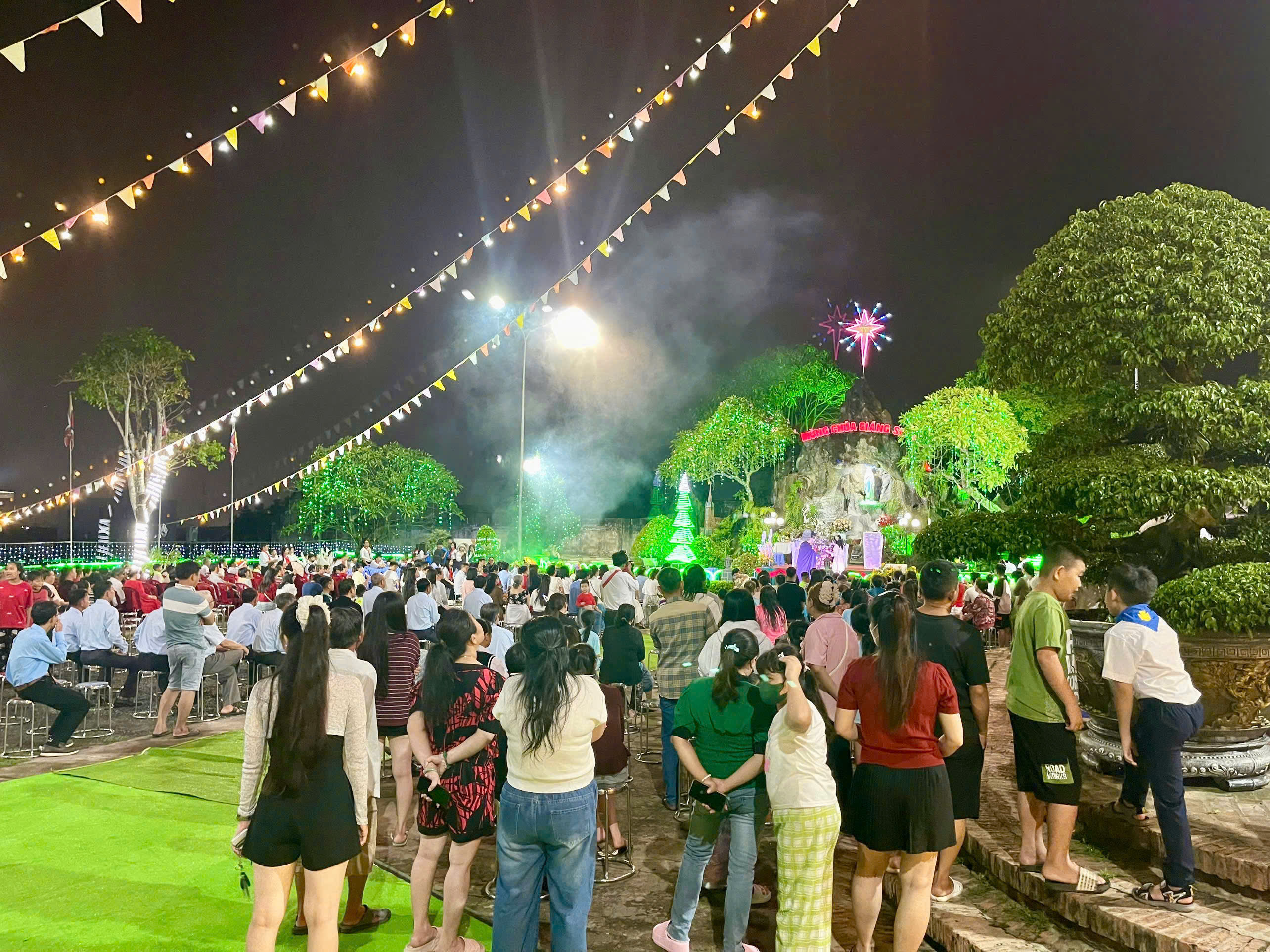 Hình ảnh người dân chăm chú xem chương trình hoạt cảnh tại Giáo xứ Phước Lý