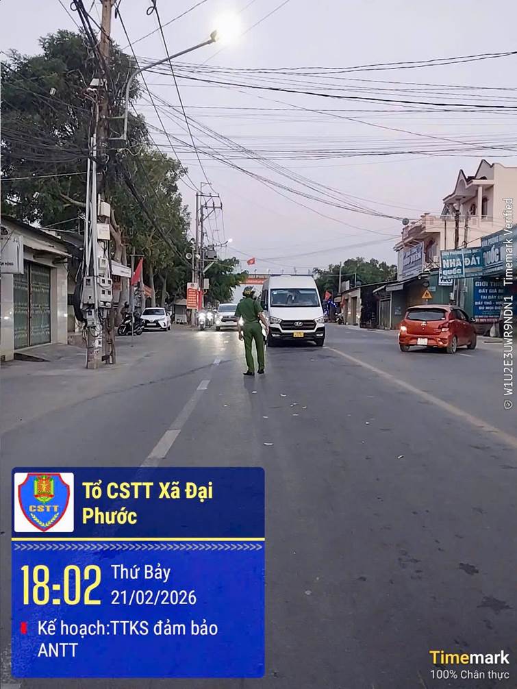 Hình ảnh Tổ CSTT Công an xã căng mình phân luồng, điều tiết giao thông chiều ngày 21/02/2026