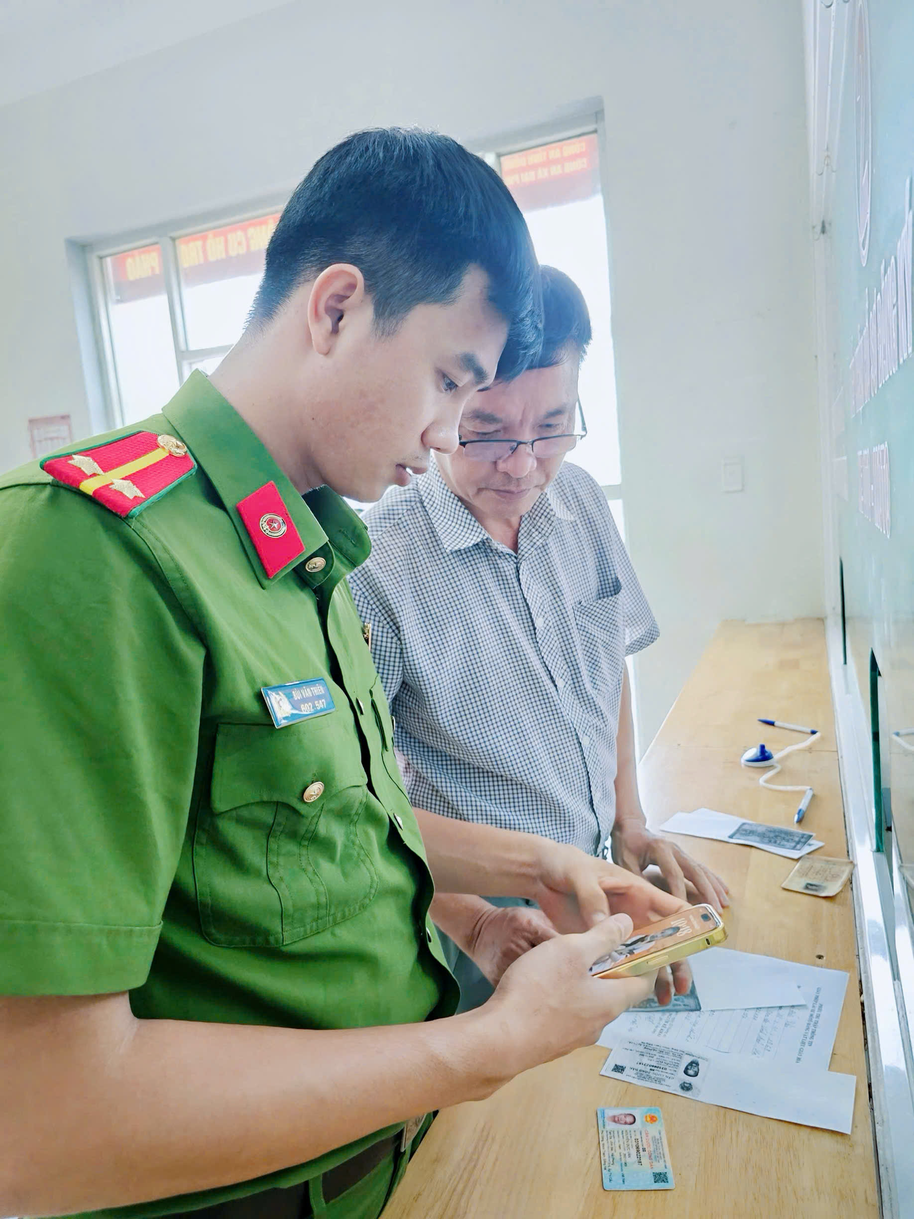 Trong những ngày đầu triển khai, không ít người dân còn bỡ ngỡ, chưa nắm rõ quy trình kiểm tra, cập nhật thông tin. Lực lượng Công an xã đã chủ động bố trí cán bộ trực hướng dẫn, tiếp nhận, giải thích chi tiết từng bước; đồng thời giúp người dân tra cứu, bổ sung, điều chỉnh thông tin ngay tại trụ sở. Sự tận tình, chu đáo và tinh thần trách nhiệm của cán bộ, chiến sĩ đã tạo được sự đồng thuận, tin tưởng, giúp người dân thực hiện nhanh chóng, thuận lợi các thủ tục.