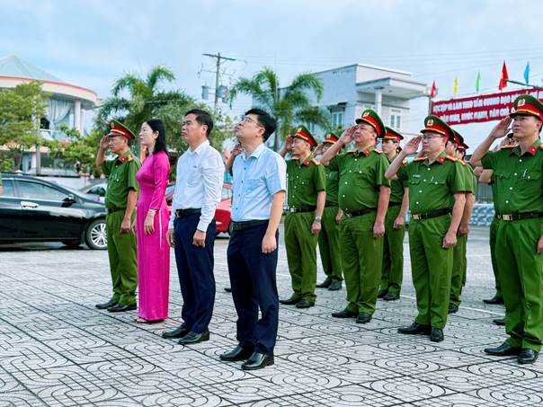Lãnh đạo xã Đại Phước tham dự Lễ chào cờ Tổ quốc tháng 9/2025 tại Công an xã Đại Phước