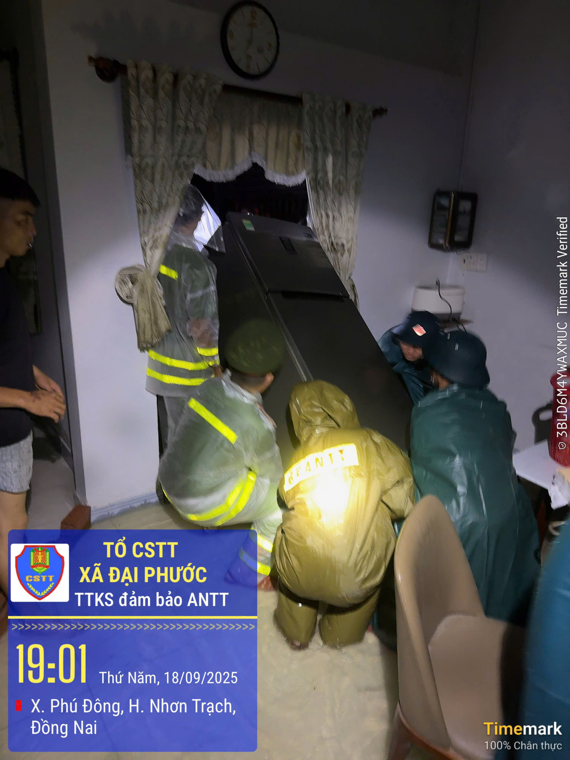 Ngay khi nhận được tin báo, Công an xã Đại Phước, tỉnh Đồng Nai đã nhanh chóng triển khai lực lượng, phối hợp cùng Quân sự xã và các Tổ an ninh trật tự cơ sở có mặt kịp thời tại hiện trường. Lực lượng đã trực tiếp hỗ trợ di dời người già, trẻ nhỏ và tài sản thiết yếu của các hộ dân đến nơi an toàn, đồng thời tuyên truyền, nhắc nhở bà con nâng cao cảnh giác, không trú ngụ tại khu vực nguy hiểm.