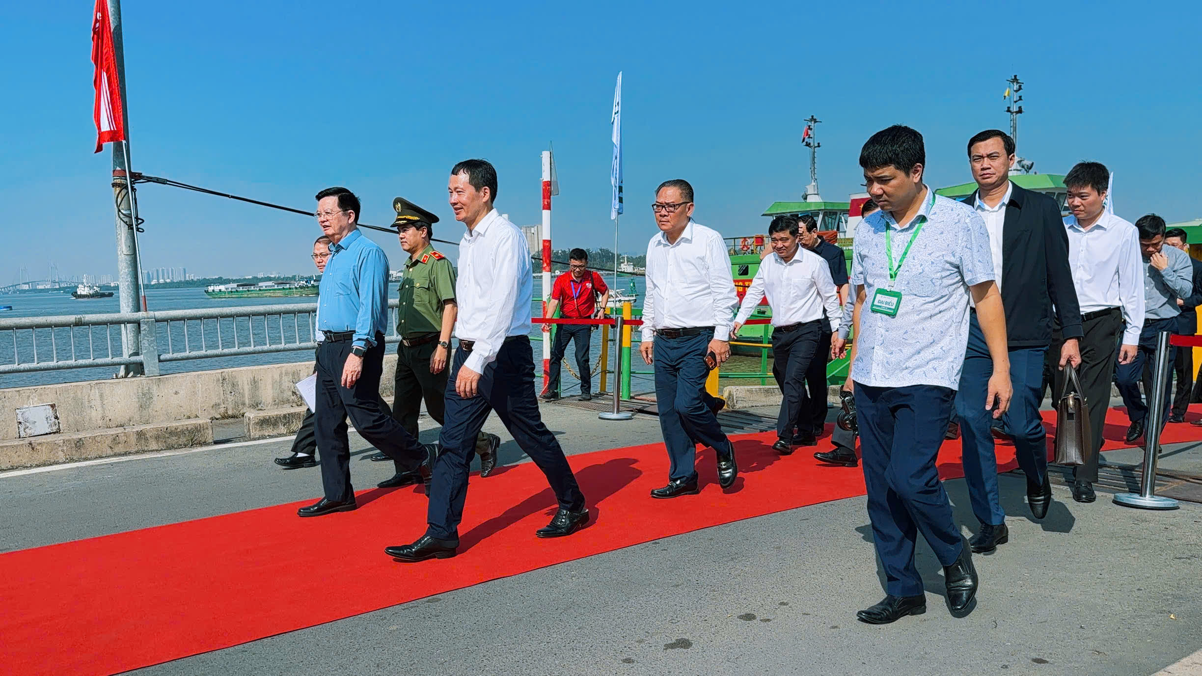 Đồng chí Mai Văn Chính - Ủy viên Ban chấp hành Trung ương Đảng, Phó Thủ tướng Chính phủ và các đồng chí lãnh đạo, đại biểu dự lễ động thổ dự án đầu tư xây dựng cầu Cát Lái