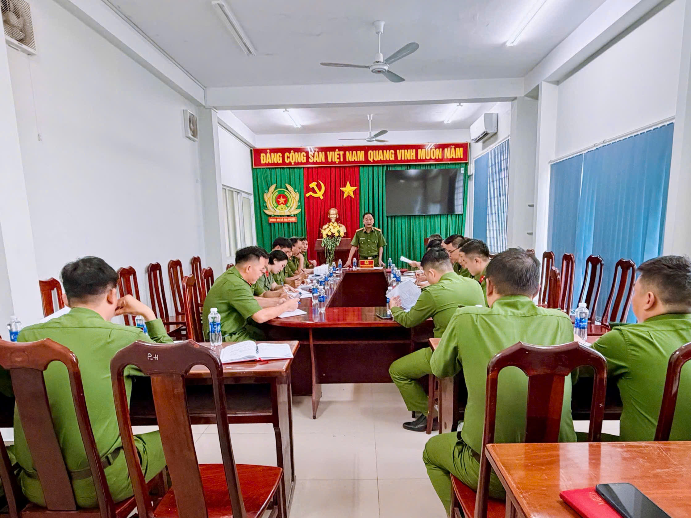 Tại buổi triển khai, lãnh đạo Công an xã đã phổ biến, quán triệt đầy đủ nội dung kế hoạch; đồng thời nhấn mạnh yêu cầu nâng cao tinh thần trách nhiệm, chủ động nắm chắc tình hình, triển khai đồng bộ các biện pháp nghiệp vụ, không để bị động, bất ngờ trong mọi tình huống. Trên cơ sở đó, Công an xã đã phân công nhiệm vụ cụ thể cho từng tổ công tác, từng cán bộ, chiến sĩ, bảo đảm rõ người, rõ việc, rõ trách nhiệm.
