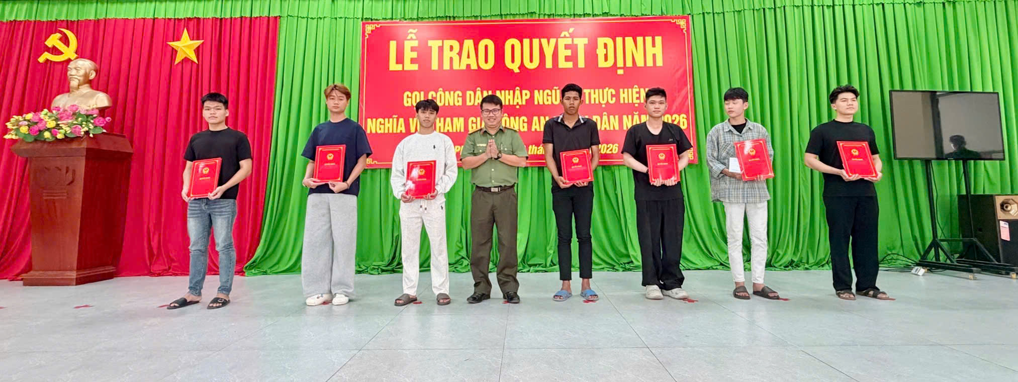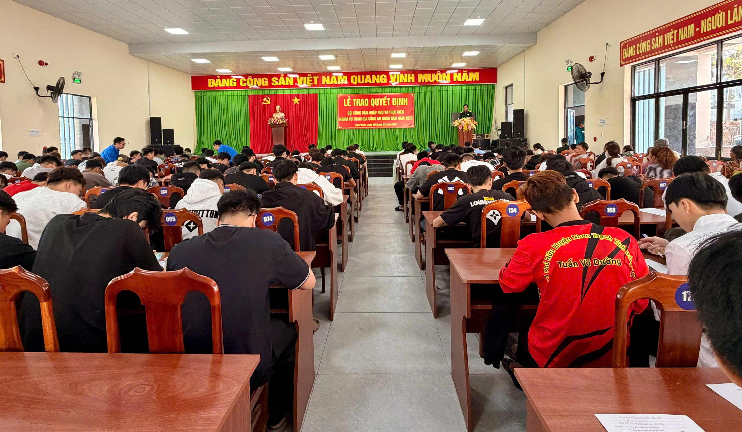 Sáng ngày 08/02/2026, tại Hội trường Trung tâm Văn hóa – Thể thao – Học tập cộng đồng xã Đại Phước, Hội đồng Nghĩa vụ quân sự xã Đại Phước (tỉnh Đồng Nai) đã long trọng tổ chức Lễ trao quyết định gọi công dân nhập ngũ và thực hiện nghĩa vụ tham gia Công an nhân dân năm 2026.