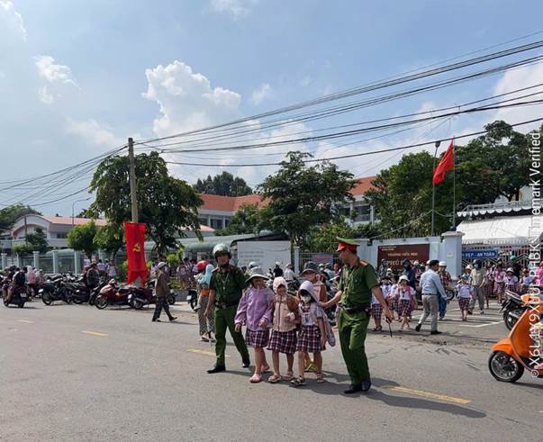 Nhằm bảo đảm an ninh trật tự và an toàn giao thông cho buổi lễ, Công an xã Đại Phước đã triển khai lực lượng từ rất sớm, tổ chức phân luồng, điều tiết phương tiện, giữ gìn trật tự tại khu vực cổng trường và các tuyến đường trọng điểm. Đồng thời, lực lượng cũng tăng cường tuần tra, kịp thời xử lý các tình huống phát sinh, góp phần giữ vững an toàn tuyệt đối cho thầy cô, phụ huynh và học sinh.