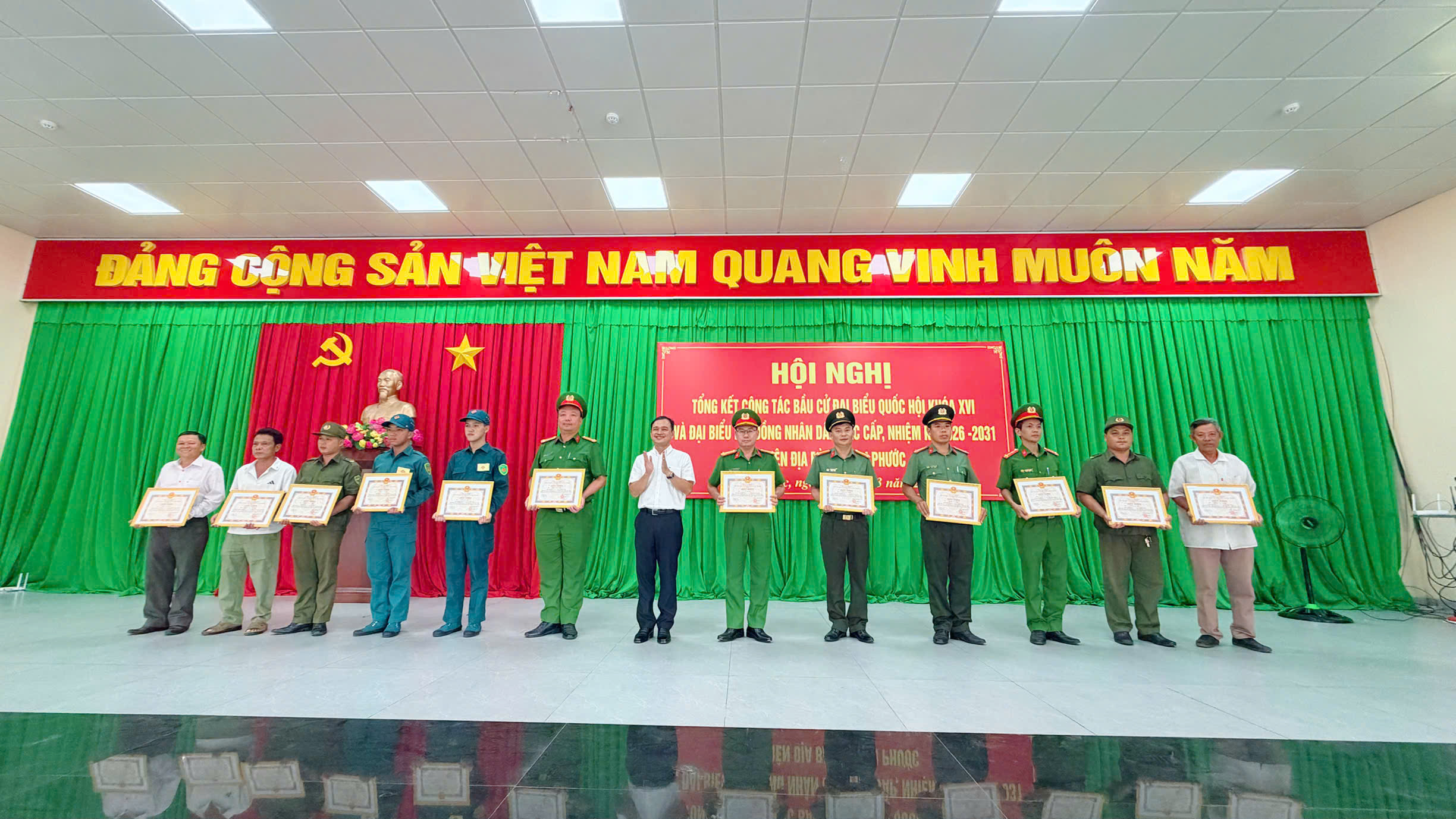 Bên cạnh đó, lực lượng Công an xã còn đẩy mạnh công tác tuyên truyền, vận động Nhân dân chấp hành nghiêm các quy định của pháp luật, tích cực tham gia bảo vệ an ninh trật tự tại cơ sở, góp phần tạo môi trường ổn định, an toàn để cuộc bầu cử diễn ra thành công tốt đẹp. Với những kết quả đạt được, 03 tập thể và 11 cá nhân thuộc Công an xã Đại Phước đã được khen thưởng.