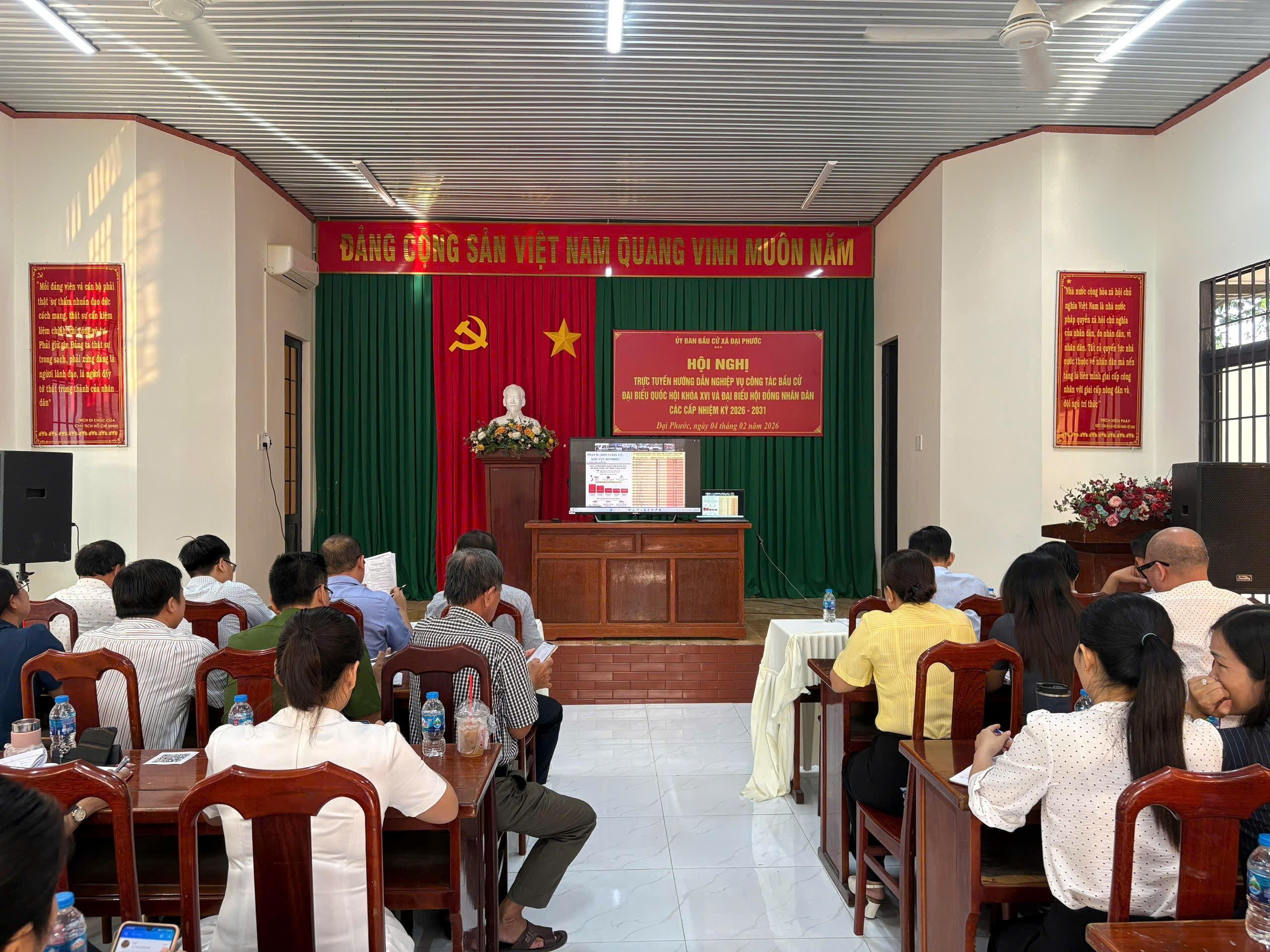 Tại điểm cầu xã Đại Phước, tham dự hội nghị có các thành viên Ủy ban bầu cử xã, Ban Bầu cử đại biểu HĐND cấp xã, các Tổ bầu cử cùng cán bộ, công chức trực tiếp tham mưu công tác bầu cử trên địa bàn. Việc tham dự đầy đủ, đúng thành phần thể hiện tinh thần nghiêm túc, chủ động chuẩn bị cho công tác bầu cử sắp tới.