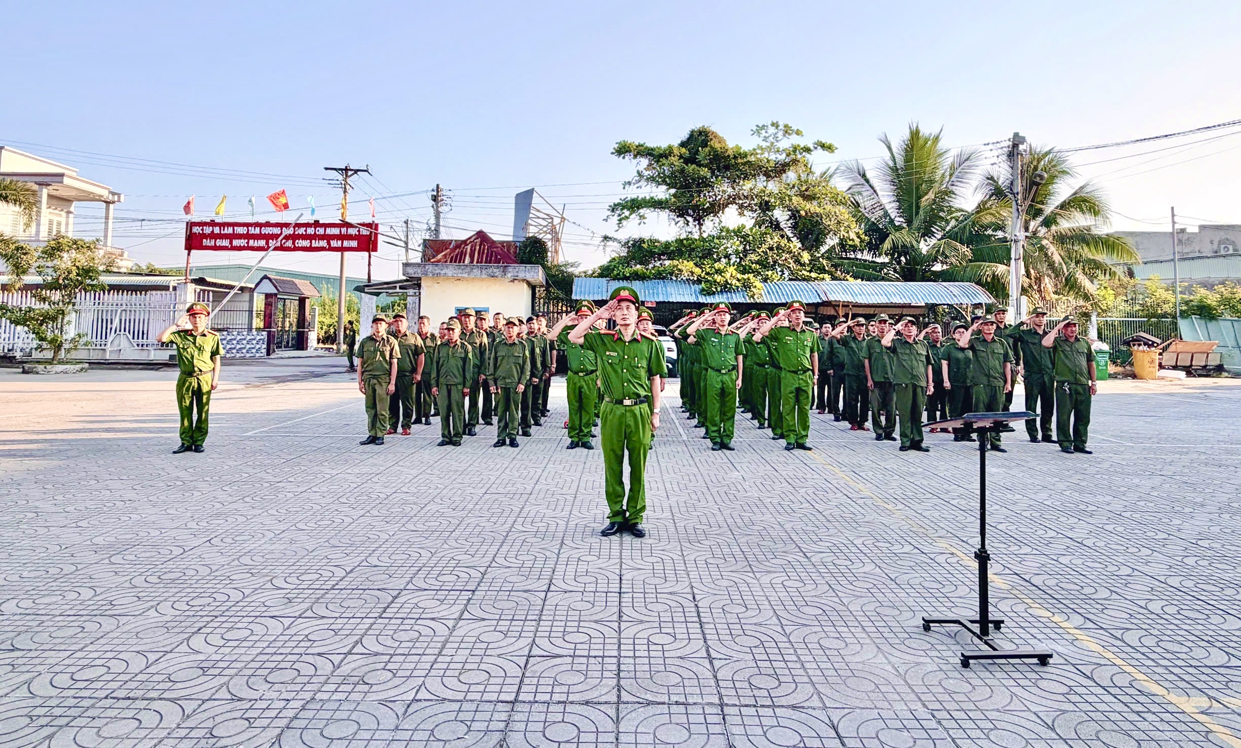 Ngay sau lễ dâng hương, nghi thức chào cờ Tổ quốc đầu tháng được tổ chức nghiêm túc, đúng điều lệnh Công an nhân dân, góp phần giáo dục truyền thống cách mạng, bồi đắp lòng yêu nước, ý thức trách nhiệm và tinh thần kỷ luật cho cán bộ, chiến sĩ.