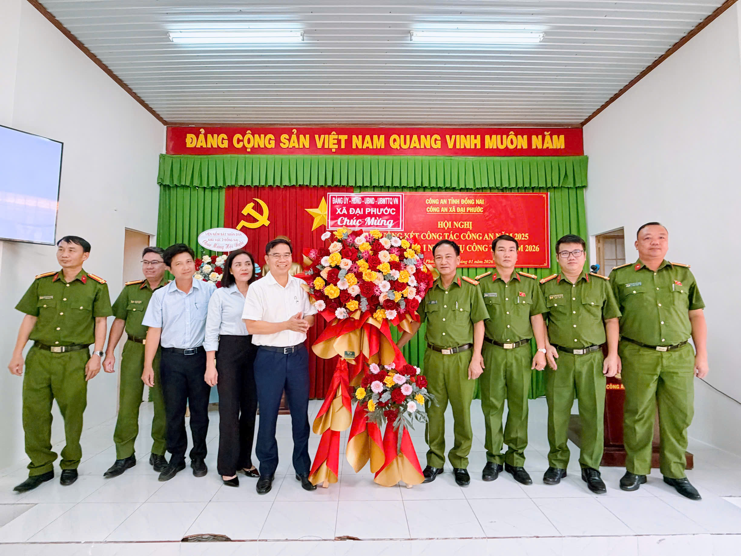 Đồng chí Nguyễn Thế Phong – Tỉnh ủy viên, Bí thư Đảng ủy, Chủ tịch HĐND xã Đại Phước dự và chỉ đạo Hội nghị. Tham dự Hội nghị còn có đồng chí Nguyễn Thị Ngọc Mai – Ủy viên Ban Thường vụ Đảng ủy, Phó Chủ tịch HĐND xã; đồng chí Nguyễn Văn Nhân – Ủy viên Ban Thường vụ Đảng ủy, Phó Chủ tịch UBND xã; đại diện lãnh đạo Phòng PC01 - Công an tỉnh, đại diện lãnh đạo các phòng, ban thuộc UBND xã; đại diện lãnh đạo Viện kiểm sát nhân dân khu vực 2 – tỉnh Đồng Nai, lãnh đạo Ban Chỉ huy Quân sự xã, Hội Cựu Công an nhân dân xã, cùng toàn thể lãnh đạo, chỉ huy và cán bộ, chiến sĩ Công an xã và Tổ trưởng 15 Tổ An ninh trật tự cơ sở xã Đại Phước.