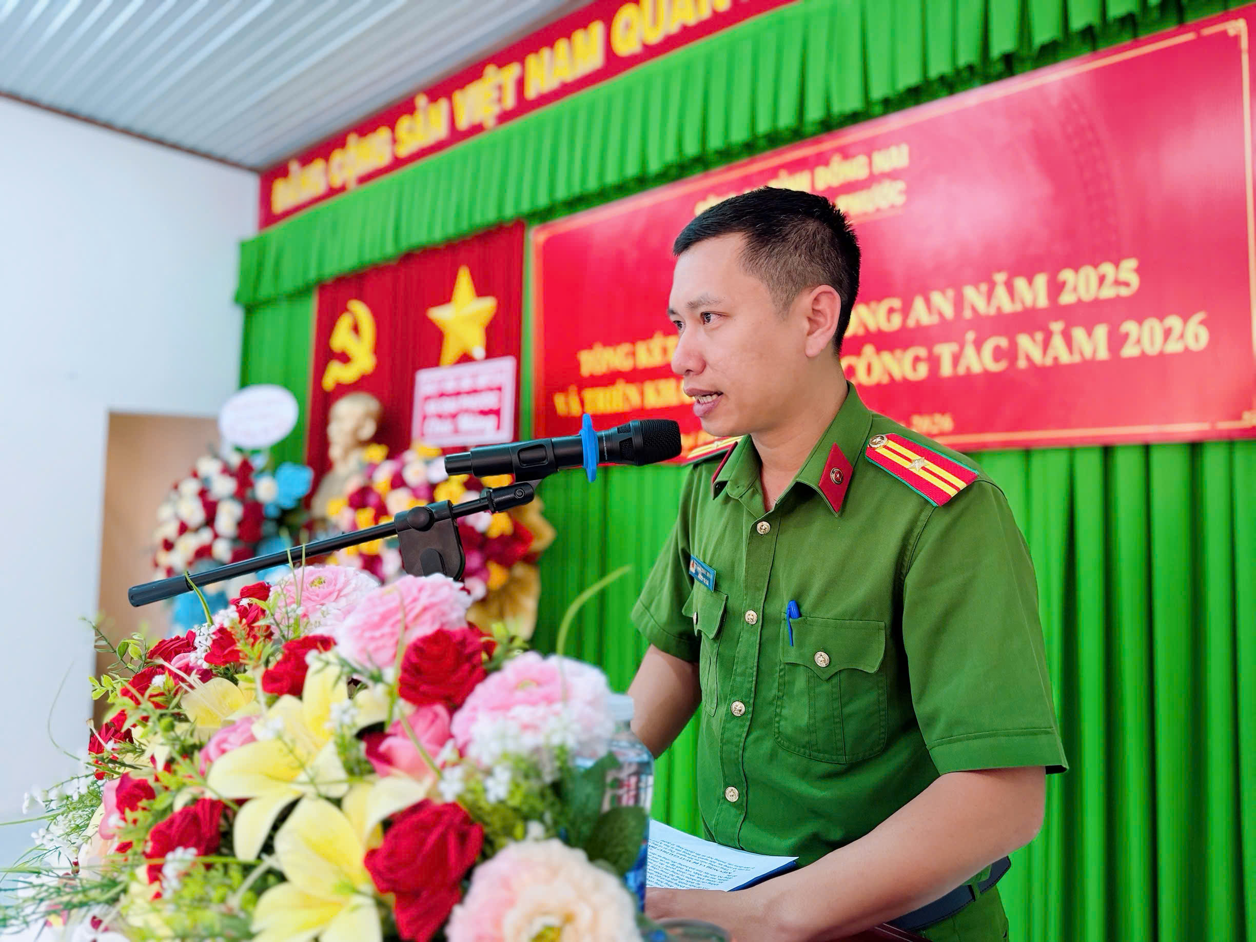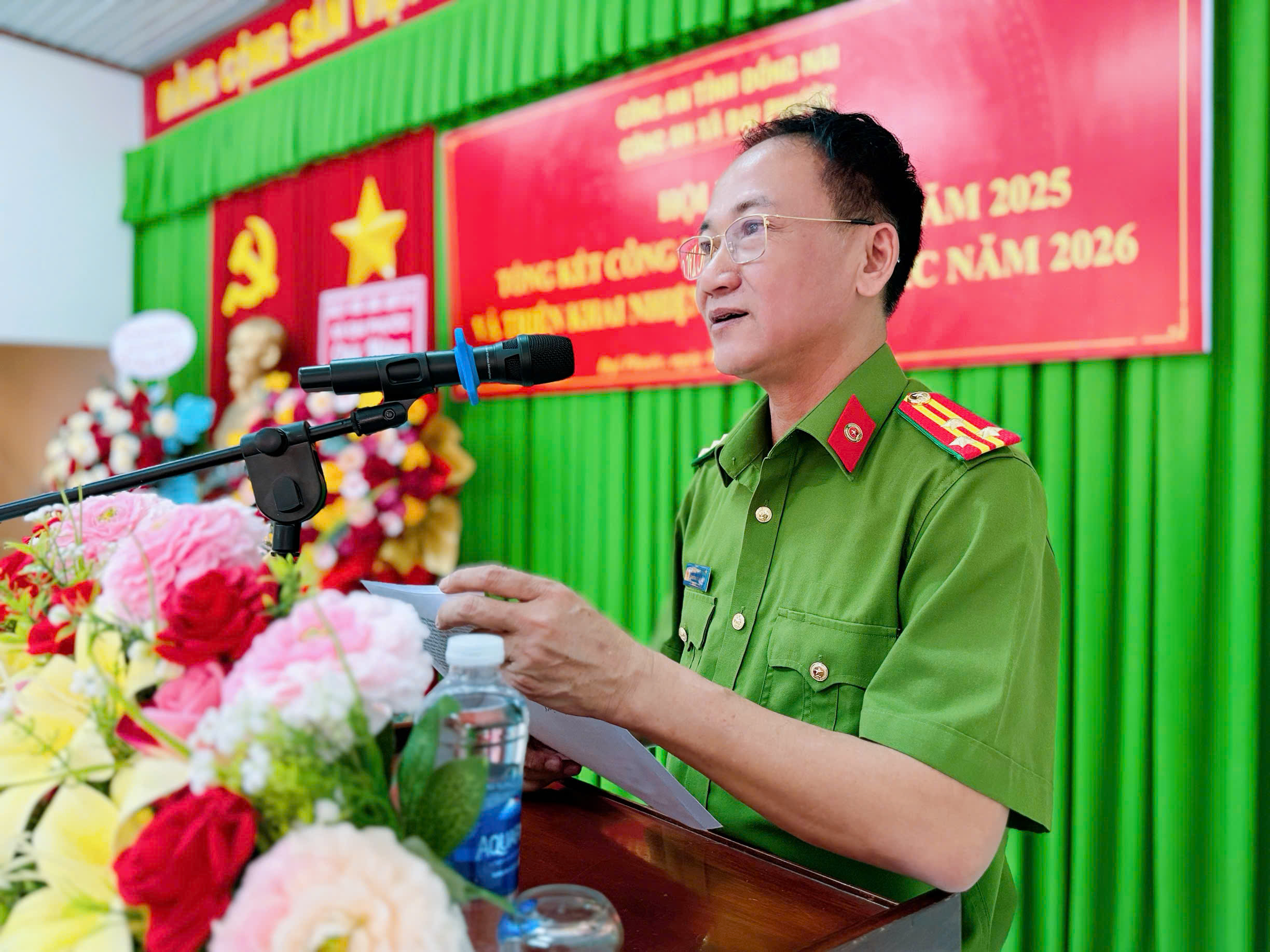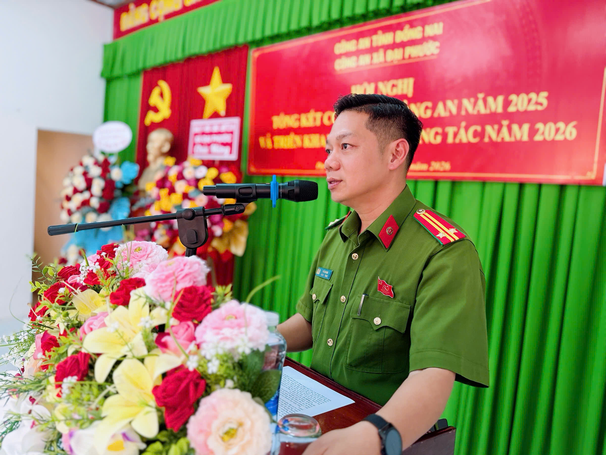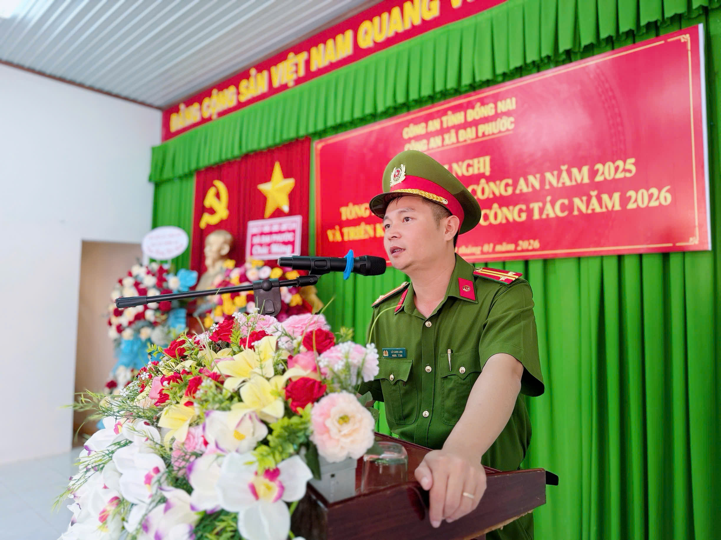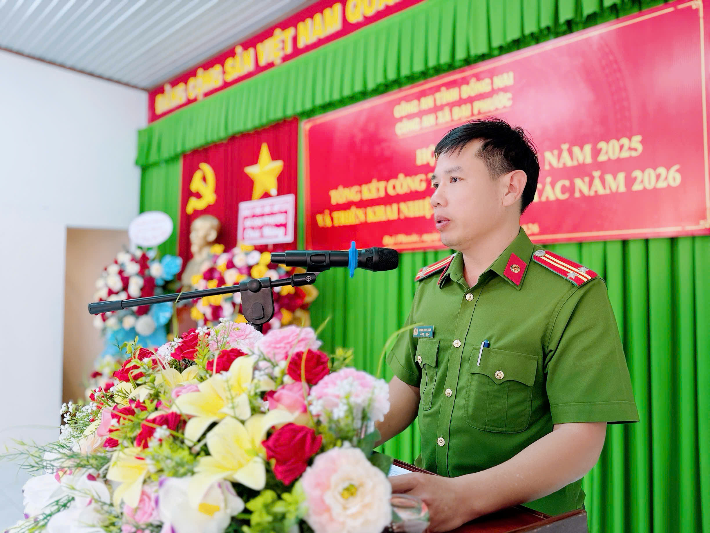 Phát biểu kết luận Hội nghị, đồng chí Trưởng Công an xã Đại Phước nhấn mạnh yêu cầu toàn thể cán bộ, chiến sĩ tiếp tục nêu cao tinh thần đoàn kết, kỷ cương, trách nhiệm; chủ động nắm chắc tình hình, tăng cường các biện pháp nghiệp vụ, tập trung triển khai đồng bộ các giải pháp bảo đảm an ninh, trật tự ngay từ cơ sở; phấn đấu giữ vững ổn định địa bàn, phục vụ hiệu quả nhiệm vụ phát triển kinh tế – xã hội của địa phương trong năm 2026 và những năm tiếp theo.