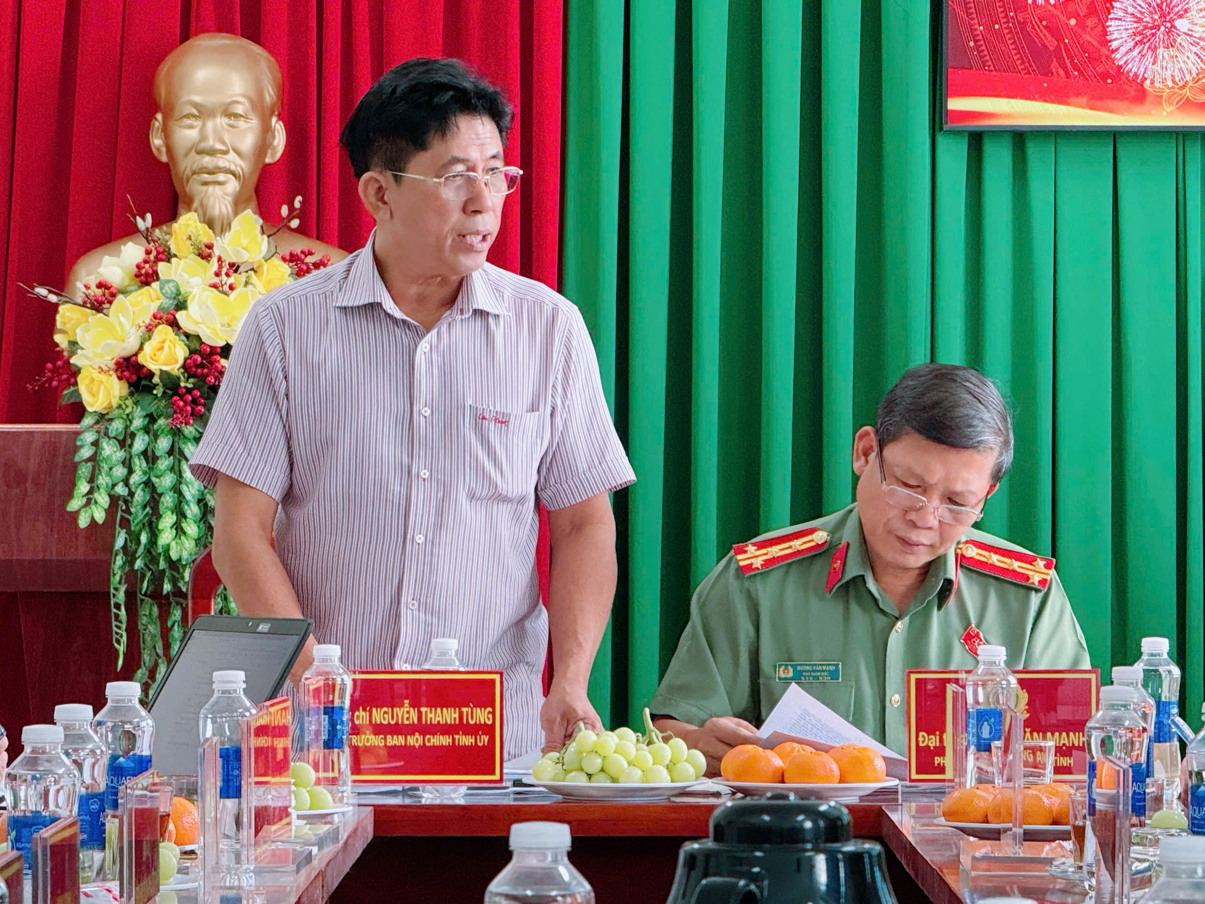 Tham dự buổi làm việc, về phía Đoàn Kiểm tra Tỉnh ủy, có đồng chí Nguyễn Thanh Tùng – Phó Trưởng Ban Nội chính Tỉnh ủy, Phó Trưởng đoàn, chủ trì buổi làm việc; đồng chí Đại tá Dương Văn Mạnh – Phó Bí thư Đảng ủy, Phó Giám đốc Công an tỉnh; cùng đại diện lãnh đạo các ban Đảng Tỉnh ủy, Ủy ban MTTQ Việt Nam tỉnh, Viện Kiểm sát nhân dân tỉnh, Tòa án nhân dân tỉnh, Văn phòng Tỉnh ủy, Văn phòng UBND tỉnh và lãnh đạo các Phòng nghiệp vụ Công an tỉnh gồm: PV01, PA02, PC02, PC04