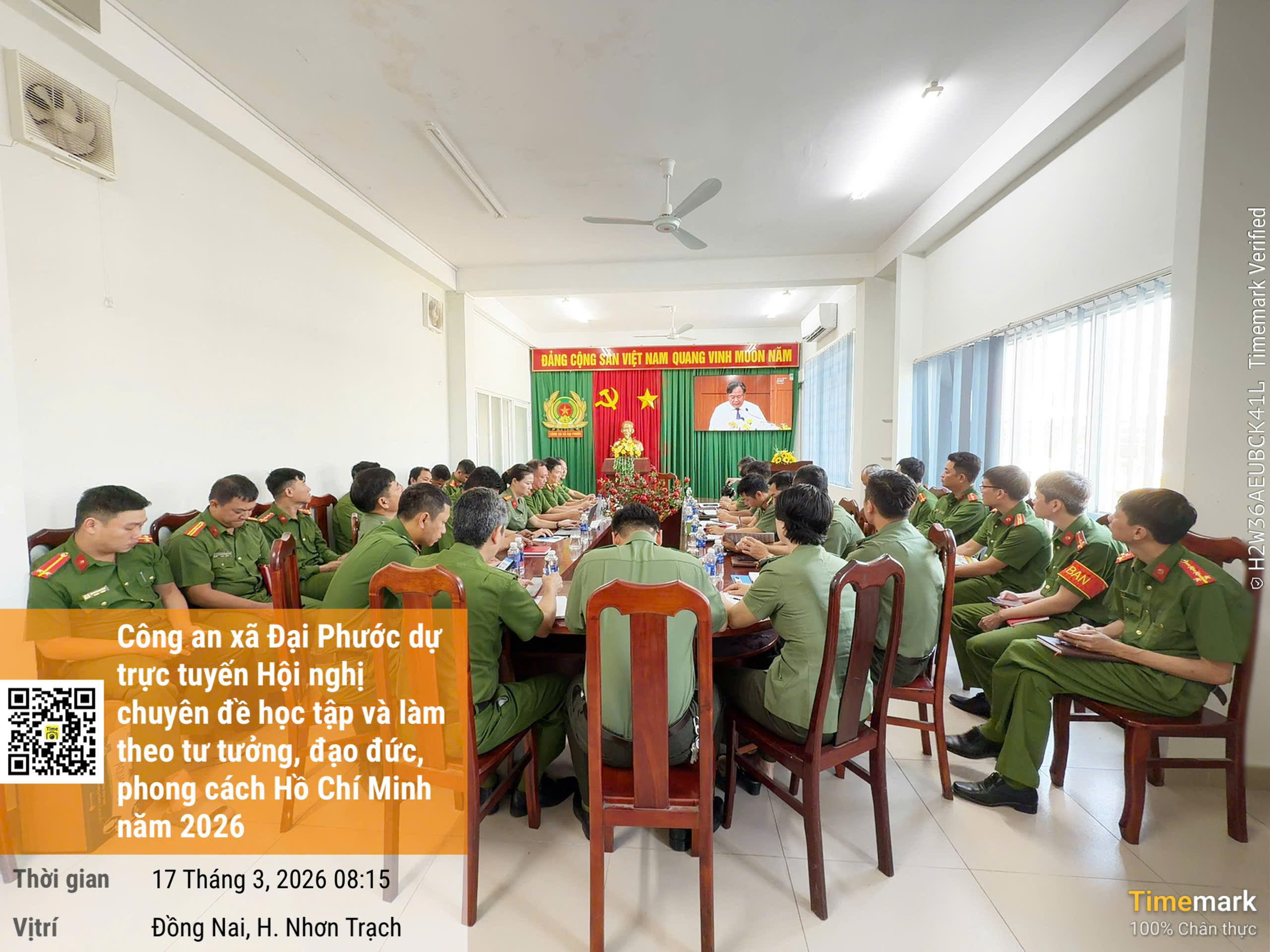 Theo đó, sáng ngày 17/3/2026, toàn thể đảng viên trong Đảng bộ Công an xã Đại Phước tham gia học tập chuyên đề năm 2026 thông qua hình thức xem truyền hình trực tiếp trên sóng Báo và Phát thanh, Truyền hình Đồng Nai, được tổ chức tại Hội trường Công an xã Đại Phước. Đây là đợt sinh hoạt chính trị quan trọng, góp phần giúp cán bộ, đảng viên tiếp tục thấm nhuần sâu sắc tư tưởng, đạo đức, phong cách Hồ Chí Minh, từ đó vận dụng sáng tạo vào thực tiễn công tác, chiến đấu và phục vụ Nhân dân.