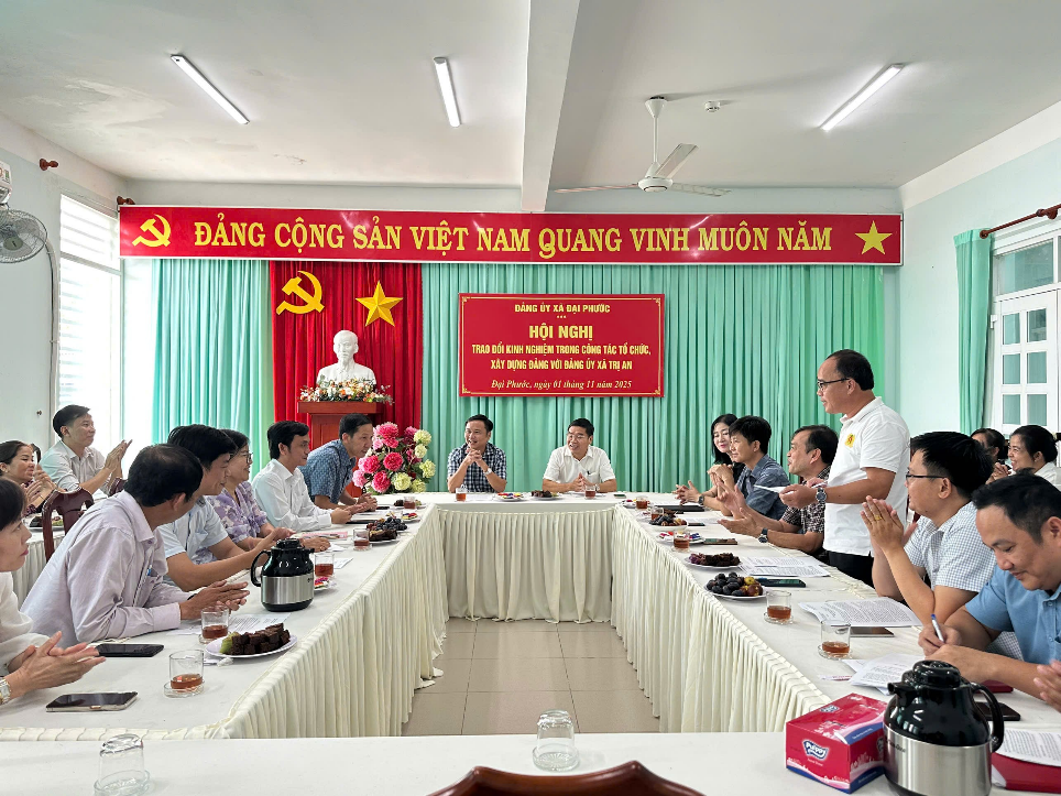 Tại buổi làm việc, các đại biểu đã tập trung chia sẻ những kết quả nổi bật trong công tác xây dựng Đảng như: công tác tạo nguồn, kết nạp đảng viên mới; nâng cao chất lượng sinh hoạt chi bộ; ứng dụng công nghệ thông tin trong quản lý hồ sơ, văn bản và xây dựng mối quan hệ phối hợp giữa Đảng ủy với chính quyền, Mặt trận Tổ quốc và các tổ chức chính trị xã hội trong điều kiện vận hành mô hình chính quyền mới. Bên cạnh đó, lãnh đạo các cơ quan tham mưu, giúp việc của Đảng ủy xã Trị An và Đảng ủy xã Đại Phước cũng tham gia thảo luận, đóng góp ý kiến và trao đổi kinh nghiệm thực tiễn tại đơn vị mình phụ trách.