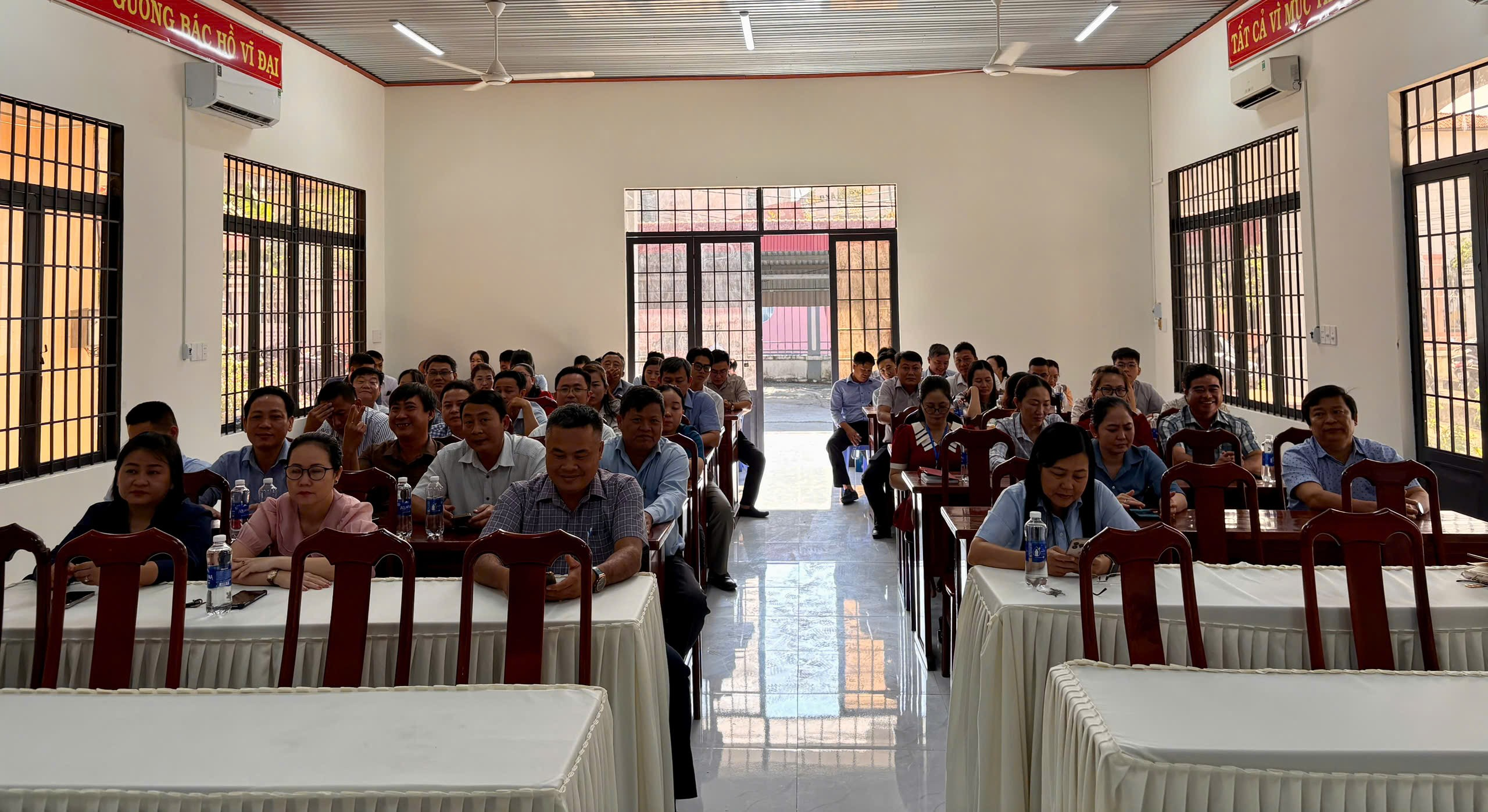 Tại điểm cầu Hội trường UBND xã, các đảng viên thuộc Đảng bộ Ủy ban nhân dân xã tham dự đầy đủ, đúng thành phần, nghiêm túc tiếp thu nội dung Hội nghị. Đây là lực lượng trực tiếp thực hiện nhiệm vụ quản lý nhà nước, phục vụ Nhân dân, do đó việc học tập chuyên đề có ý nghĩa đặc biệt quan trọng trong việc nâng cao tinh thần trách nhiệm, đạo đức công vụ và chất lượng giải quyết công việc.