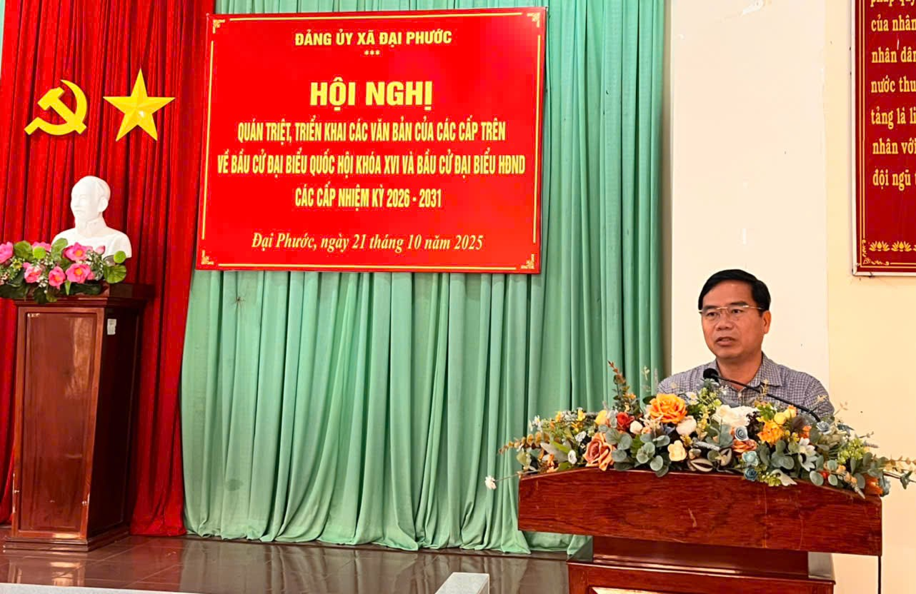 Hội nghị diễn ra trong không khí nghiêm túc, trách nhiệm và đoàn kết cao, thể hiện quyết tâm của toàn Đảng bộ xã Đại Phước trong việc thực hiện thắng lợi công tác bầu cử đại biểu Quốc hội khóa XVI và đại biểu HĐND các cấp nhiệm kỳ 2026–2031, góp phần xây dựng xã Đại Phước ngày càng phát triển, văn minh và giàu đẹp.