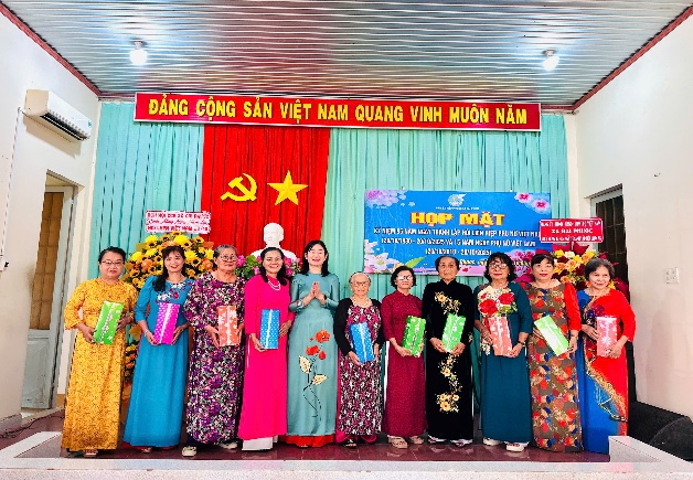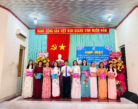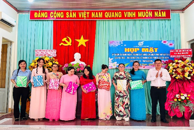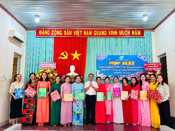 Trong lễ họp mặt, lãnh đạo Đảng ủy, HĐND, UBND, UBMTTQVN xã đã gửi tặng 120 phần quà cho các đại biểu nữ tham dự họp mặt nhân dịp 20/10.