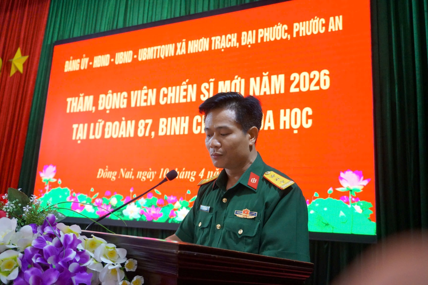 Thượng tá Cao Minh Chất – Bí thư Đảng ủy, Chính ủy Lữ đoàn 87 bày tỏ sự trân trọng trước tình cảm, sự quan tâm của lãnh đạo các địa phương; đồng thời khẳng định đơn vị sẽ tiếp tục quan tâm, giáo dục, huấn luyện để các chiến sỹ trưởng thành, trở thành những quân nhân ưu tú, góp phần xây dựng và bảo vệ vững chắc Tổ quốc.