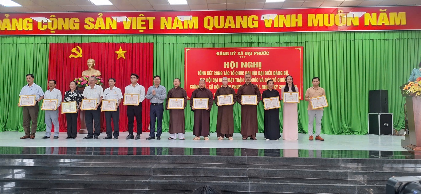 Tại hội nghị UBND xã đã có quyết định khen thưởng cho các tập thể và cá nhân có thành tích xuất sắc trong công tác tổ chức Đại hội. Đây là sự ghi nhận kịp thời của xã Đại Phước đối với những đóng góp to lớn của các tổ chức và cán bộ, đảng viên, doanh nghiệp và mạnh thường quân trong việc đảm bảo tiến độ, chất lượng và hiệu quả của công tác tổ chức Đại hội.