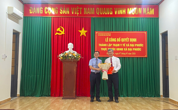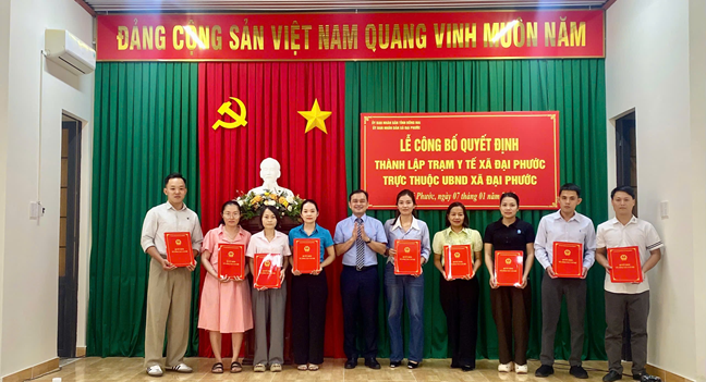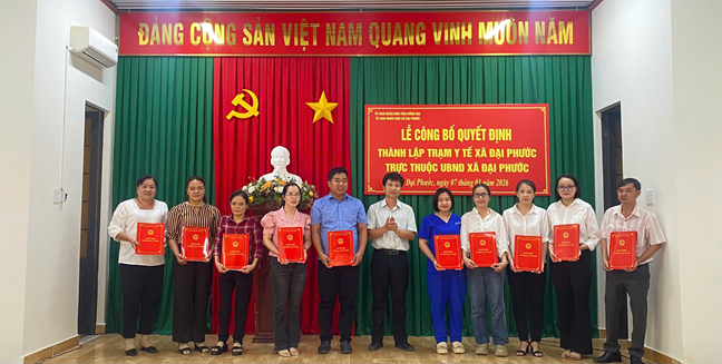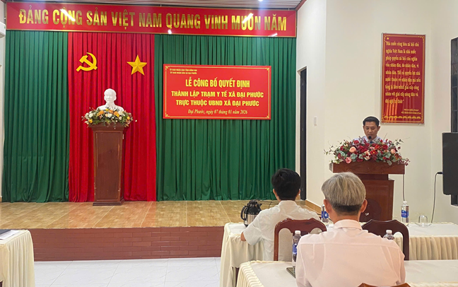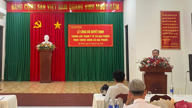 Hội nghị công bố Quyết định thành lập Trạm Y tế xã Đại Phước diễn ra trong không khí nghiêm túc, trang trọng và ý nghĩa, đánh dấu bước kiện toàn quan trọng trong công tác y tế cơ sở, góp phần thực hiện hiệu quả nhiệm vụ phát triển kinh tế – xã hội và bảo đảm an sinh trên địa bàn xã Đại Phước.