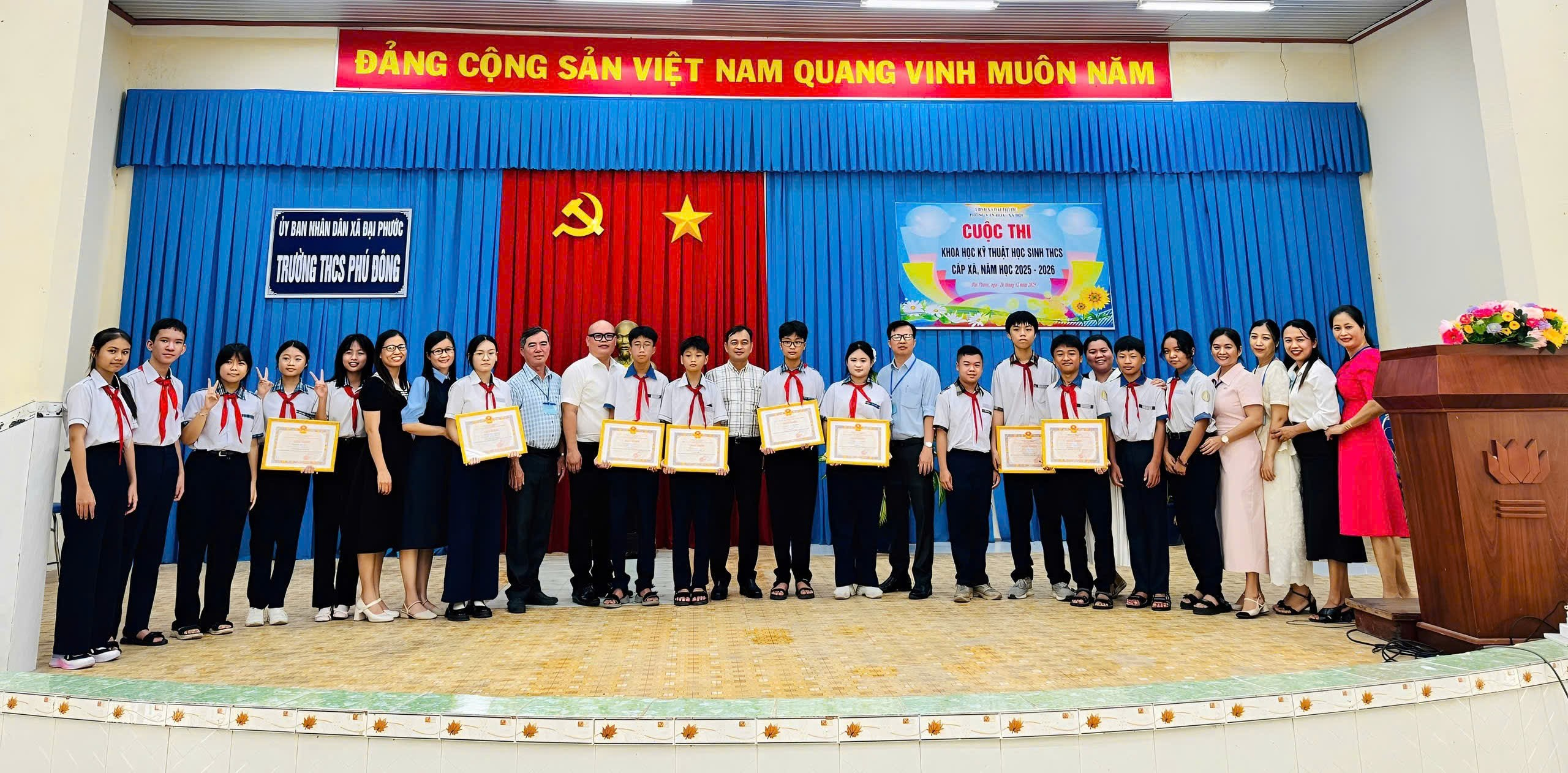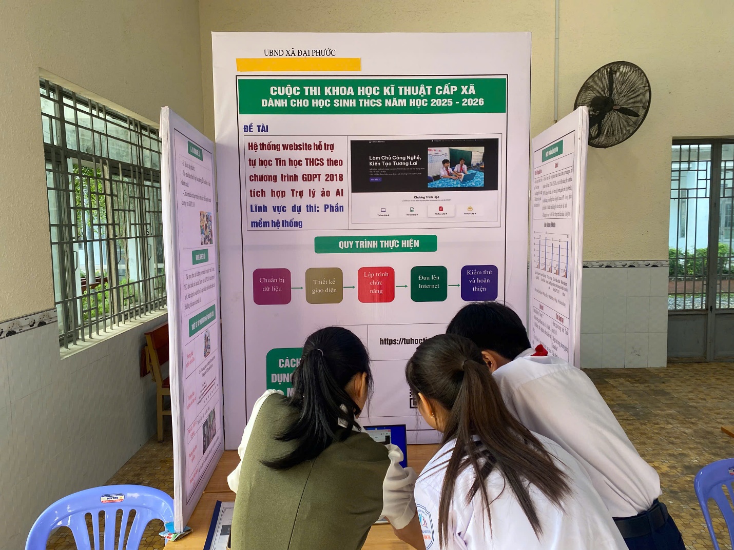 Đồng thời Ban Tổ chức lựa chọn 02 đề án đạt giải Nhất và giải Nhì để đại diện xã Đại Phước tham gia Cuộc thi khoa học, kỹ thuật cấp tỉnh. Cụ thể, đề án của Trường THCS Phước Khánh với đề tài “Chế tạo Màng dán cảnh báo chất lượng không khí dựa trên màu sắc của Anthocyanin cố định trong Gel sinh học tinh bột” và đề án của Trường THCS Dương Văn Thì với đề tài “Hệ thống website hỗ trợ tự học tin học THCS theo chương trình GDPT 2018 tích hợp Trợ lý ảo AI”.