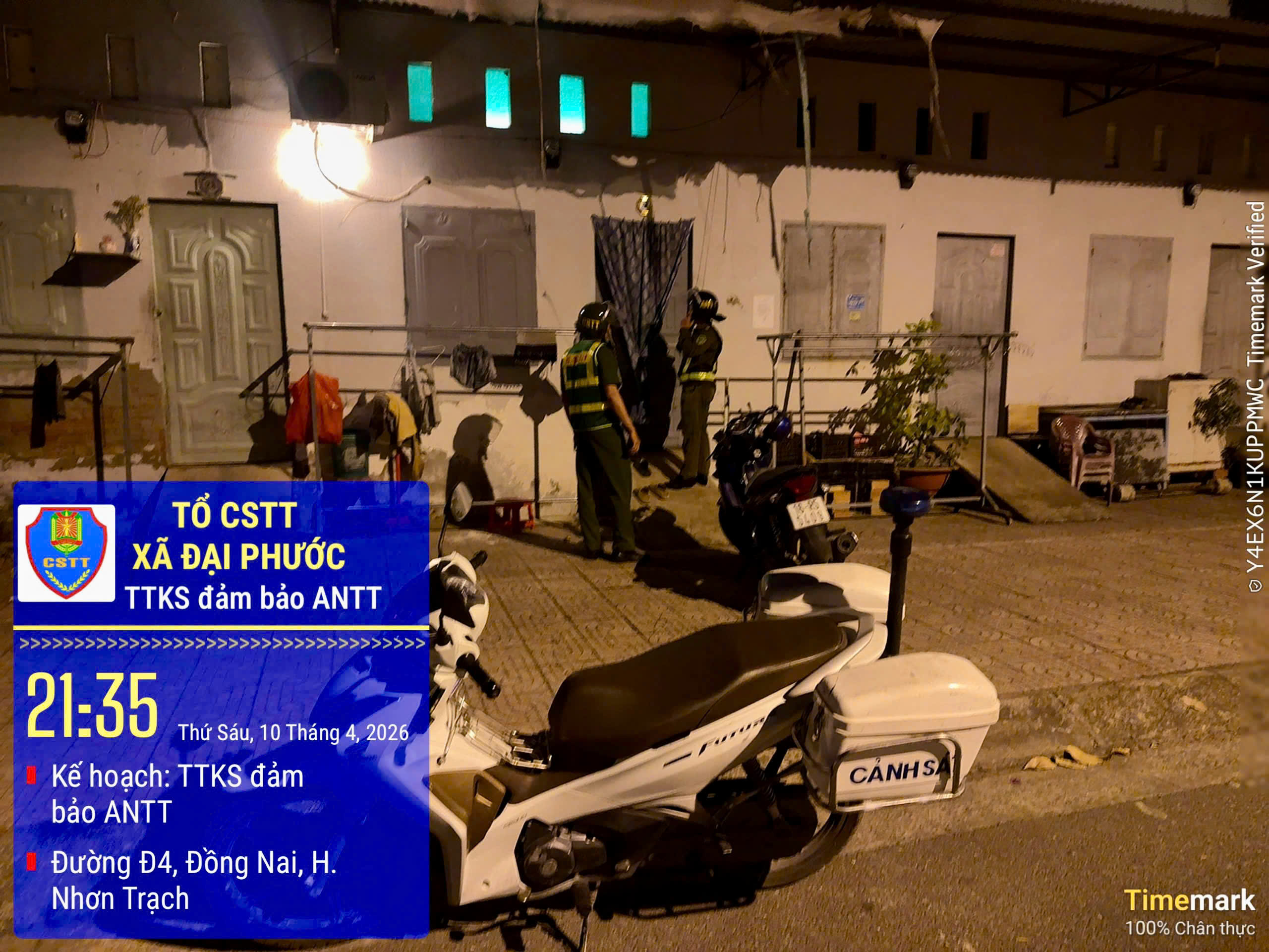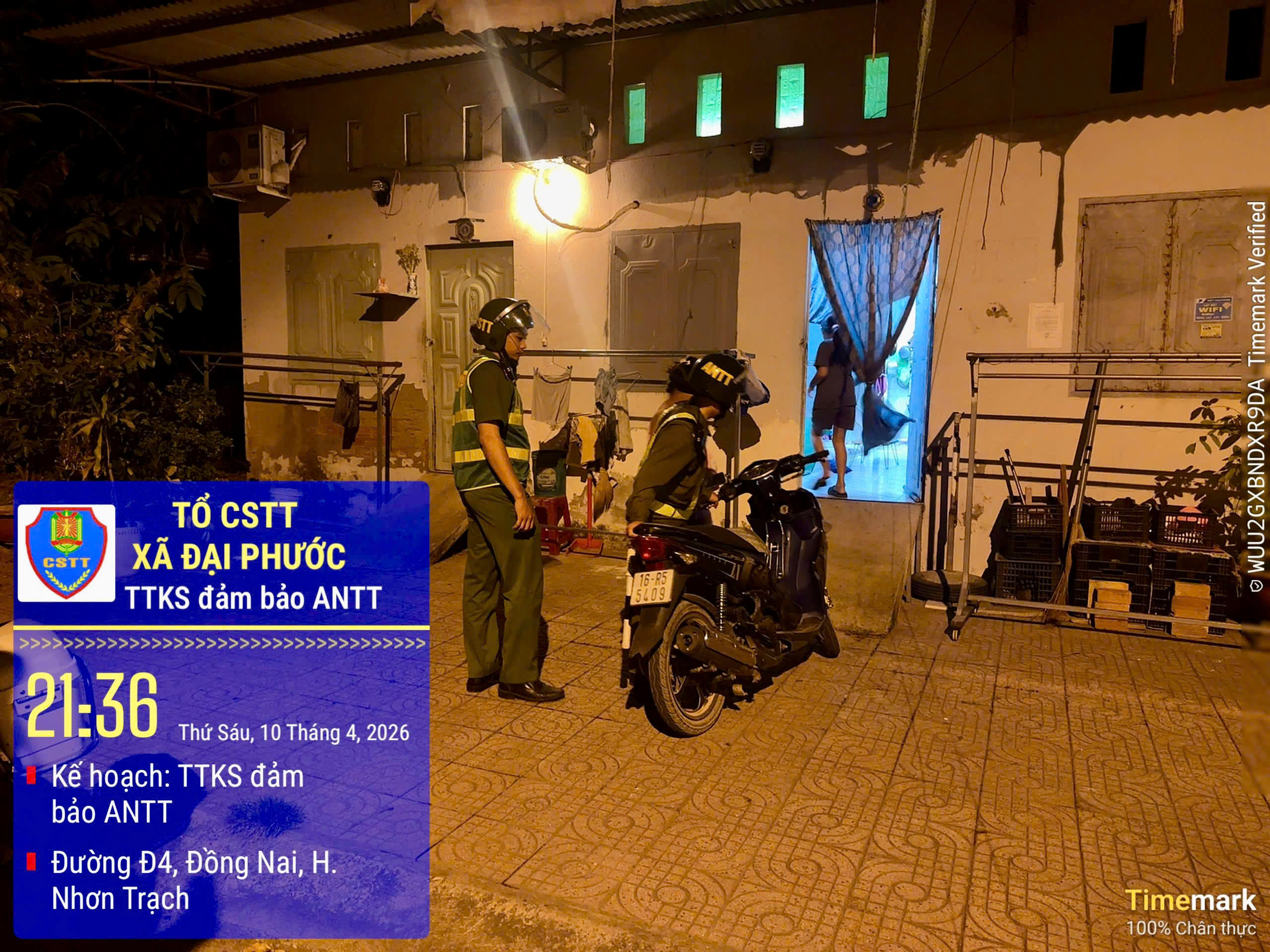 Trong quá trình tuần tra, kiểm soát bảo đảm an ninh, trật tự trên địa bàn, đêm ngày 10/4, Tổ Cảnh sát trật tự Công an xã Đại Phước (tỉnh Đồng Nai) đã phát hiện một trường hợp người dân tại dãy nhà trọ để xe máy bên ngoài trong khi đã đóng cửa đi ngủ, không có người trông giữ.