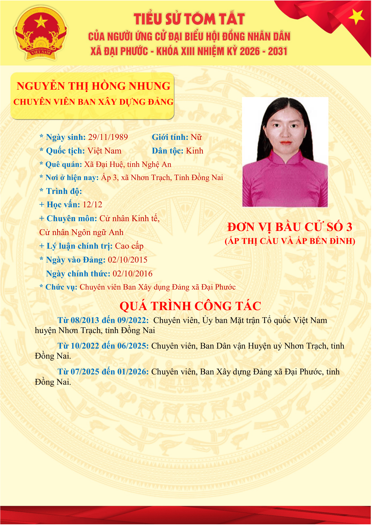 <p><span style="background-color:rgb(255,255,255);color:rgb(51,51,51);">Danh sách những người ứng cử Đại biểu HĐND xã Đại Phước khóa XIII, nhiệm kỳ 2026-2031 tại đơn vị bầu cử số 03 (ấp Thị Cầu và ấp Bến Đình)</span></p><figure class="image"><img style="aspect-ratio:1548/2200;" src="https://daiphuoc.dongnai.gov.vn/uploads/daiphuoc/news/2026_03/ho-thi-cam-chi_2.png" width="1548" height="2200" /></figure><figure class="image"><img style="aspect-ratio:1537/2200;" src="https://daiphuoc.dongnai.gov.vn/uploads/daiphuoc/news/2026_03/nguyen-van-dung.png" width="1537" height="2200" /></figure><figure class="image"><img style="aspect-ratio:1532/2200;" src="https://daiphuoc.dongnai.gov.vn/uploads/daiphuoc/news/2026_03/nguyen-thi-ngoc-mai.png" width="1532" height="2200" /></figure><figure class="image"><img style="aspect-ratio:1548/2200;" src="https://daiphuoc.dongnai.gov.vn/uploads/daiphuoc/news/2026_03/duong-van-man_2.png" width="1548" height="2200" /></figure><figure class="image"><img style="aspect-ratio:1554/2200;" src="https://daiphuoc.dongnai.gov.vn/uploads/daiphuoc/news/2026_03/nguyen-thi-hong-nhung_1.png" width="1554" height="2200" /></figure>