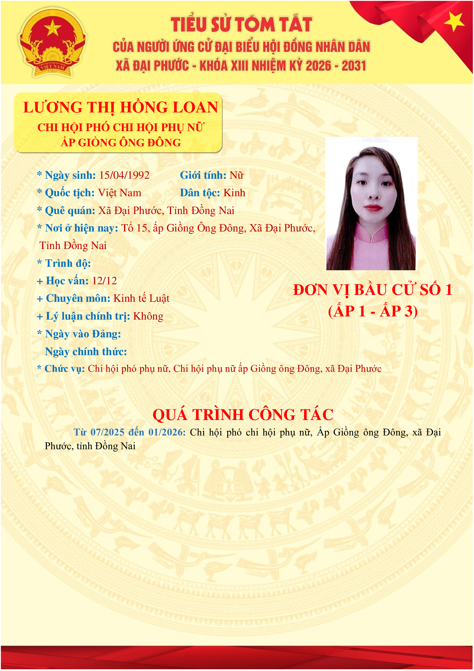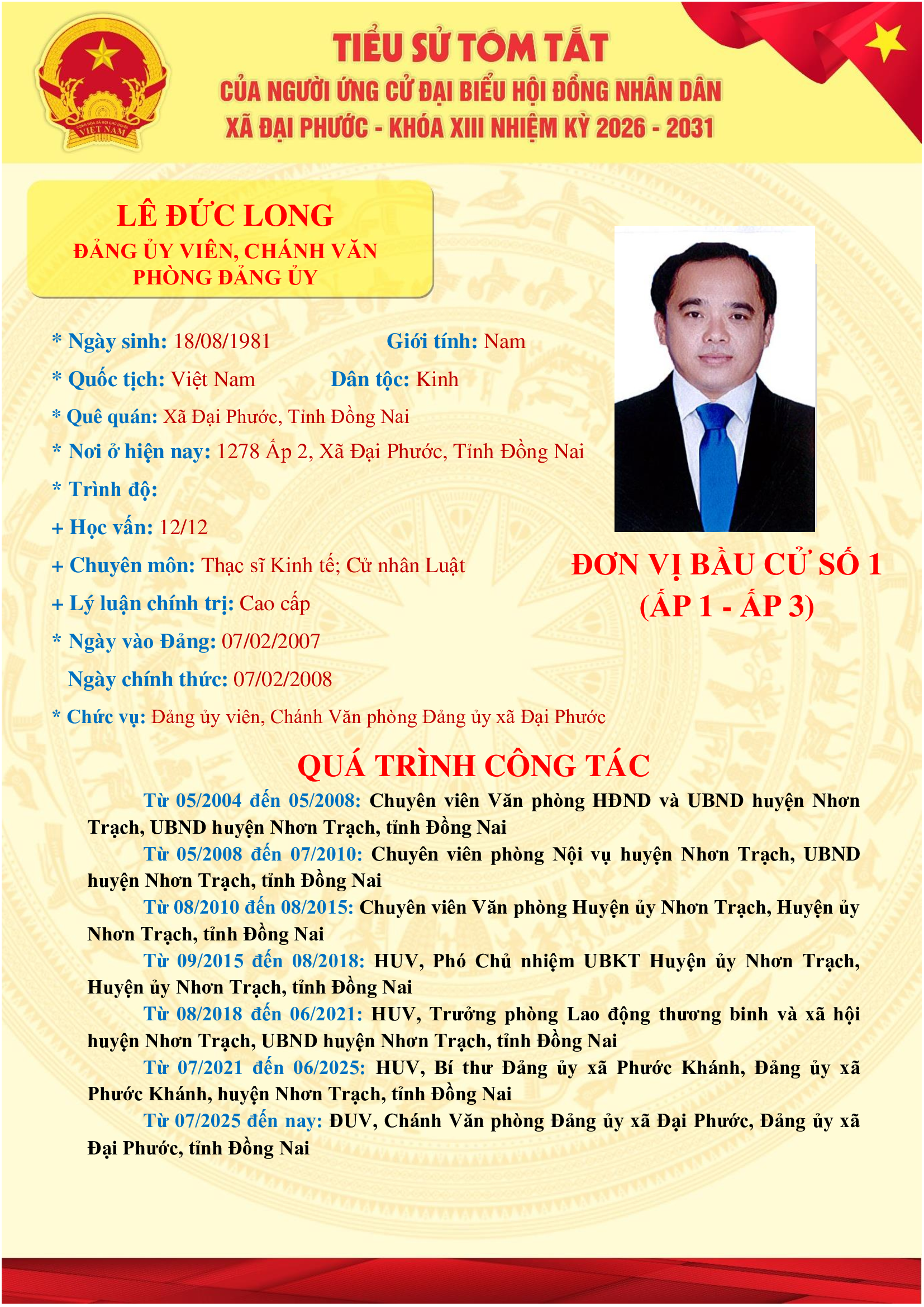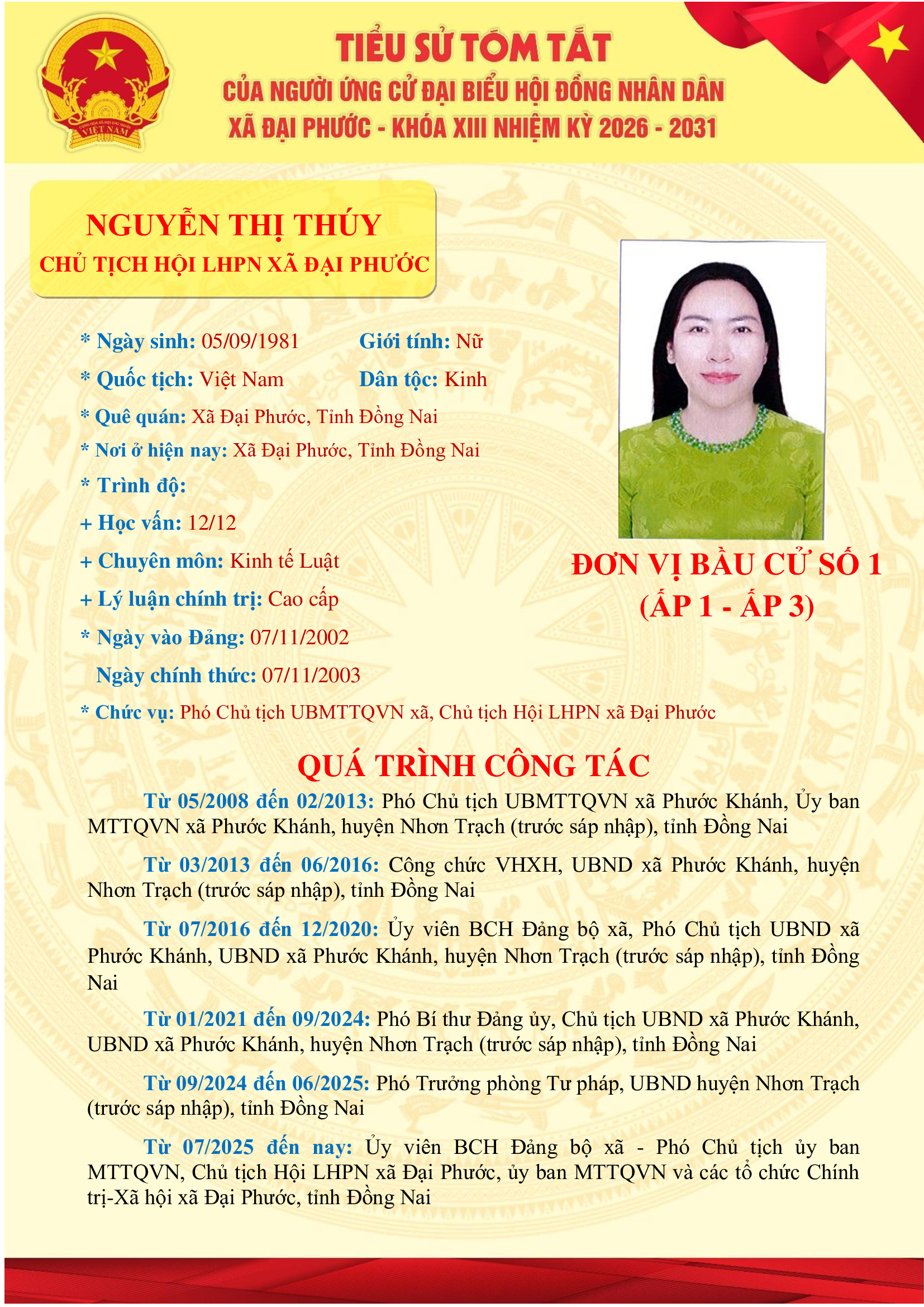 <p>Danh sách những người ứng cử Đại biểu HĐND xã Đại Phước khóa XIII, nhiệm kỳ 2026-2031 tại đơn vị bầu cử số 01 (ấp 1 và ấp 3)</p><figure class="image"><img style="aspect-ratio:1654/2339;" src="https://daiphuoc.dongnai.gov.vn/uploads/daiphuoc/news/2026_03/nguyen-dinh-khuyen.png" width="1654" height="2339" /><figcaption>Nguyễn Đình Khuyên</figcaption></figure><figure class="image"><img style="aspect-ratio:1654/2339;" src="https://daiphuoc.dongnai.gov.vn/uploads/daiphuoc/news/2026_03/nguyen-dinh-khuyen-2.png" width="1654" height="2339" /><figcaption>Nguyễn Đình Khuyên&nbsp;</figcaption></figure><figure class="image"><img style="aspect-ratio:1654/2339;" src="https://daiphuoc.dongnai.gov.vn/uploads/daiphuoc/news/2026_03/luong-thi-hong-loan.png" width="1654" height="2339" /></figure><figure class="image"><img style="aspect-ratio:1654/2339;" src="https://daiphuoc.dongnai.gov.vn/uploads/daiphuoc/news/2026_03/le-duc-long.png" width="1654" height="2339" /></figure><figure class="image"><img style="aspect-ratio:1654/2339;" src="https://daiphuoc.dongnai.gov.vn/uploads/daiphuoc/news/2026_03/ho-trang-nhung.png" width="1654" height="2339" /></figure><p>&nbsp;</p><p>&nbsp;</p><p>&nbsp;</p><p>&nbsp;</p><figure class="image"><img style="aspect-ratio:1654/2339;" src="https://daiphuoc.dongnai.gov.vn/uploads/daiphuoc/news/2026_03/nguyen-thi-thuy.png" width="1654" height="2339" /></figure>