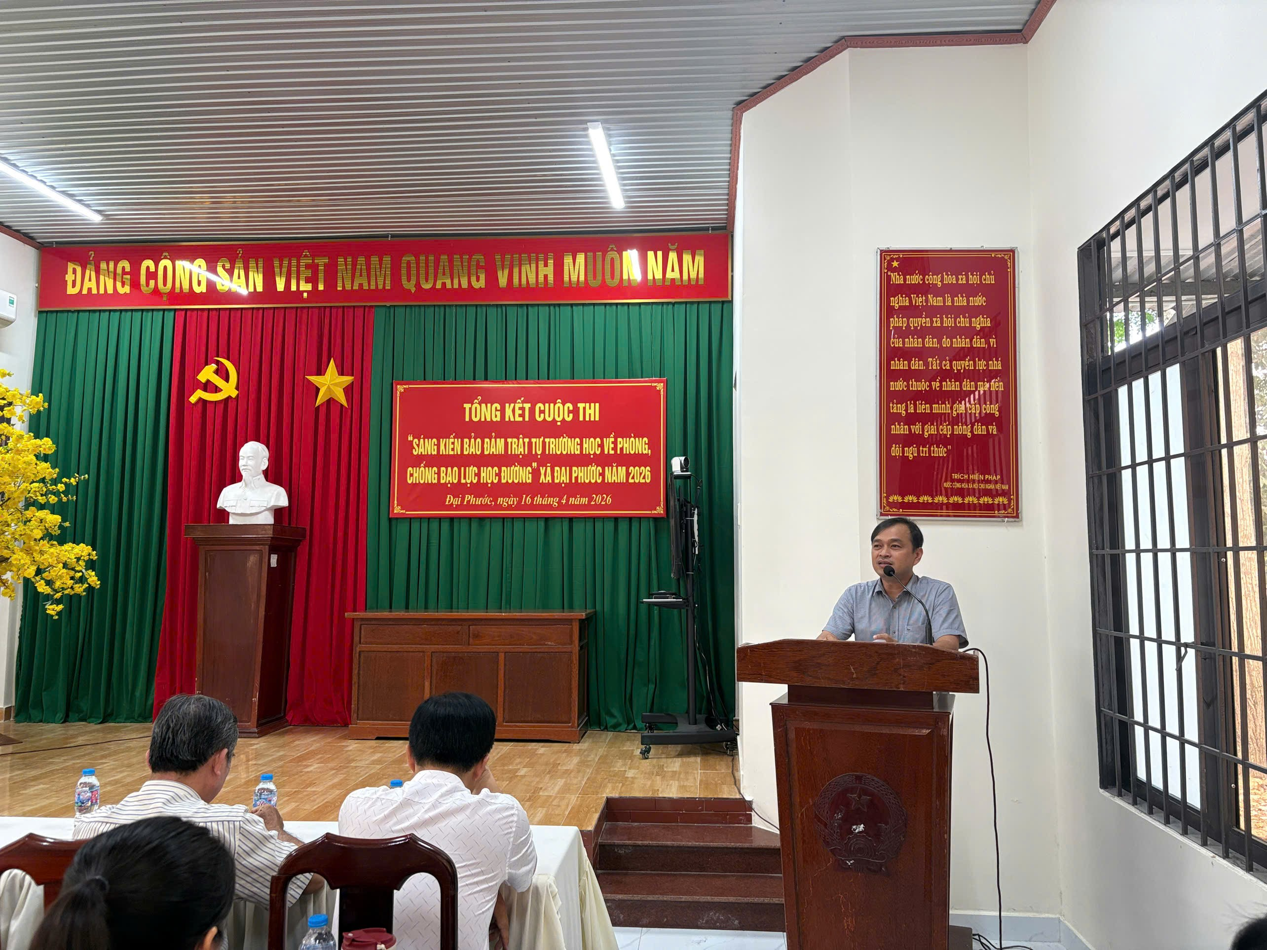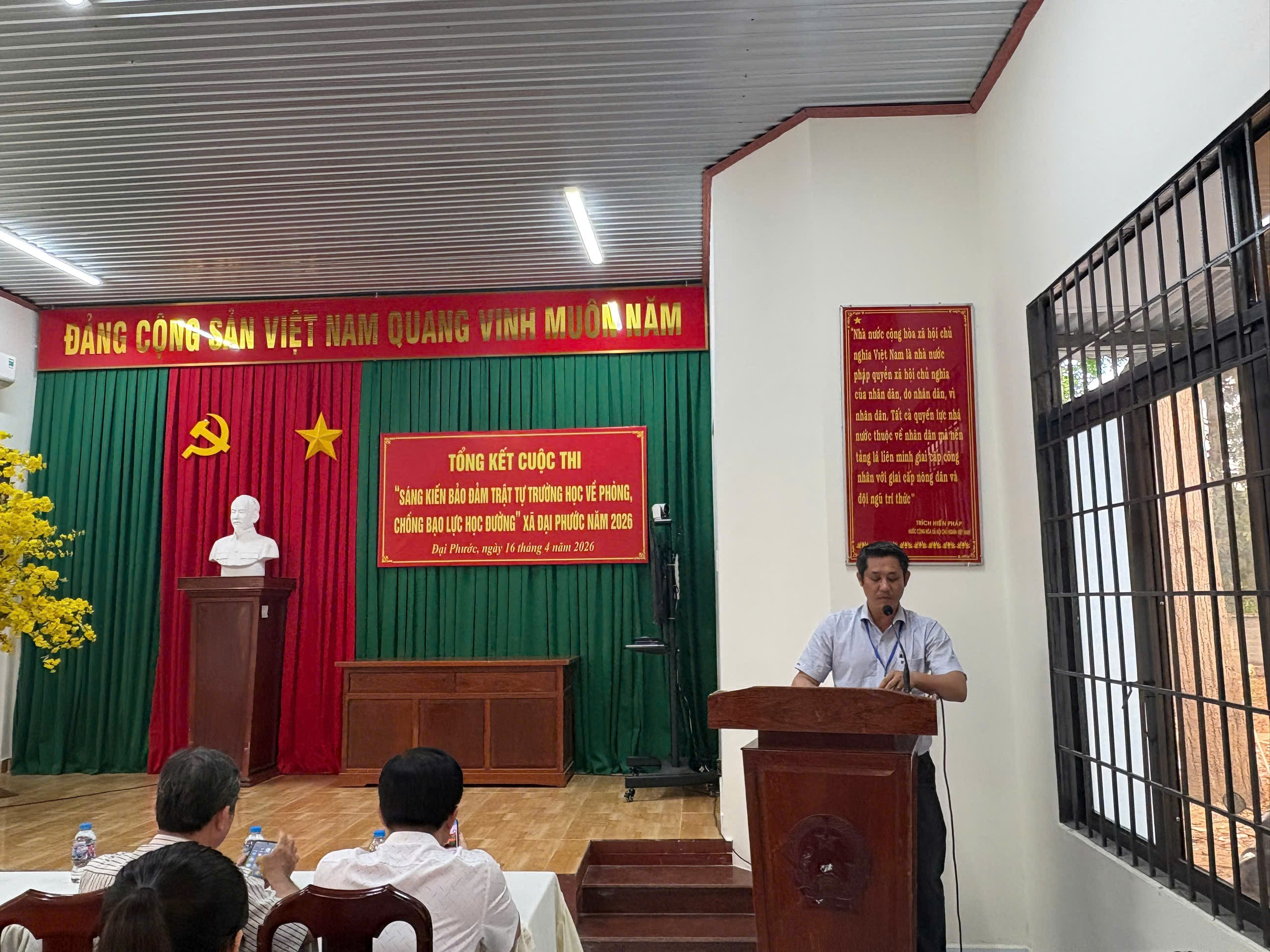 Chiều ngày 16/4/2026, tại Hội trường UBND xã Đại Phước đã tổ chức Hội nghị tổng kết và trao giải Cuộc thi “Sáng kiến bảo đảm trật tự trường học về phòng, chống bạo lực học đường” năm 2026.