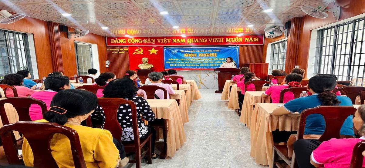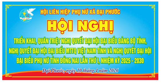 <p style="text-align:justify;">&nbsp;</p><p>&nbsp;</p><figure class="image"><img style="aspect-ratio:562/291;" src="https://daiphuoc.dongnai.gov.vn/uploads/daiphuoc/news/2026_04/image_80.png" width="562" height="291" /></figure><p>Thực hiện chương trình công tác năm 2026, Hội LHPN xã đã tổ chức Hội nghị triển khai, quán triệt Nghị quyết Đại hội Đảng bộ tỉnh Đồng Nai, Nghị quyết Đại hội đại biểu MTTQ Việt Nam tỉnh và Nghị quyết Đại hội đại biểu Hội LHPN tỉnh Đồng Nai lần thứ I, nhiệm kỳ 2025 – 2030 đến toàn thể cán bộ, hội viên phụ nữ.</p><figure class="image"><img style="aspect-ratio:565/223;" src="https://daiphuoc.dongnai.gov.vn/uploads/daiphuoc/news/2026_04/image_129.jpeg" width="565" height="223" /></figure><p style="text-align:justify;">Tại hội nghị, các đại biểu đã được phổ biến những nội dung cốt lõi, mục tiêu, nhiệm vụ và giải pháp trọng tâm trong nhiệm kỳ mới; qua đó giúp nâng cao nhận thức, tạo sự thống nhất về ý chí và hành động trong cán bộ, hội viên phụ nữ.</p><p style="text-align:justify;">Việc triển khai, quán triệt Nghị quyết nhằm phát huy vai trò, trách nhiệm của mỗi cán bộ, hội viên trong việc cụ thể hóa Nghị quyết vào thực tiễn công tác Hội và phong trào phụ nữ tại địa phương; góp phần xây dựng tổ chức Hội vững mạnh, tham gia tích cực vào phát triển kinh tế - xã hội, giữ vững quốc phòng - an ninh.</p><figure class="image"><img style="aspect-ratio:525/242;" src="https://daiphuoc.dongnai.gov.vn/uploads/daiphuoc/news/2026_04/image_130.jpeg" width="525" height="242" /></figure><p style="text-align:justify;">Thông qua hoạt động, Hội LHPN xã tiếp tục khẳng định quyết tâm đoàn kết, đổi mới, sáng tạo, thi đua thực hiện thắng lợi các mục tiêu, nhiệm vụ đã đề ra trong nhiệm kỳ 2025 – 2030.</p>