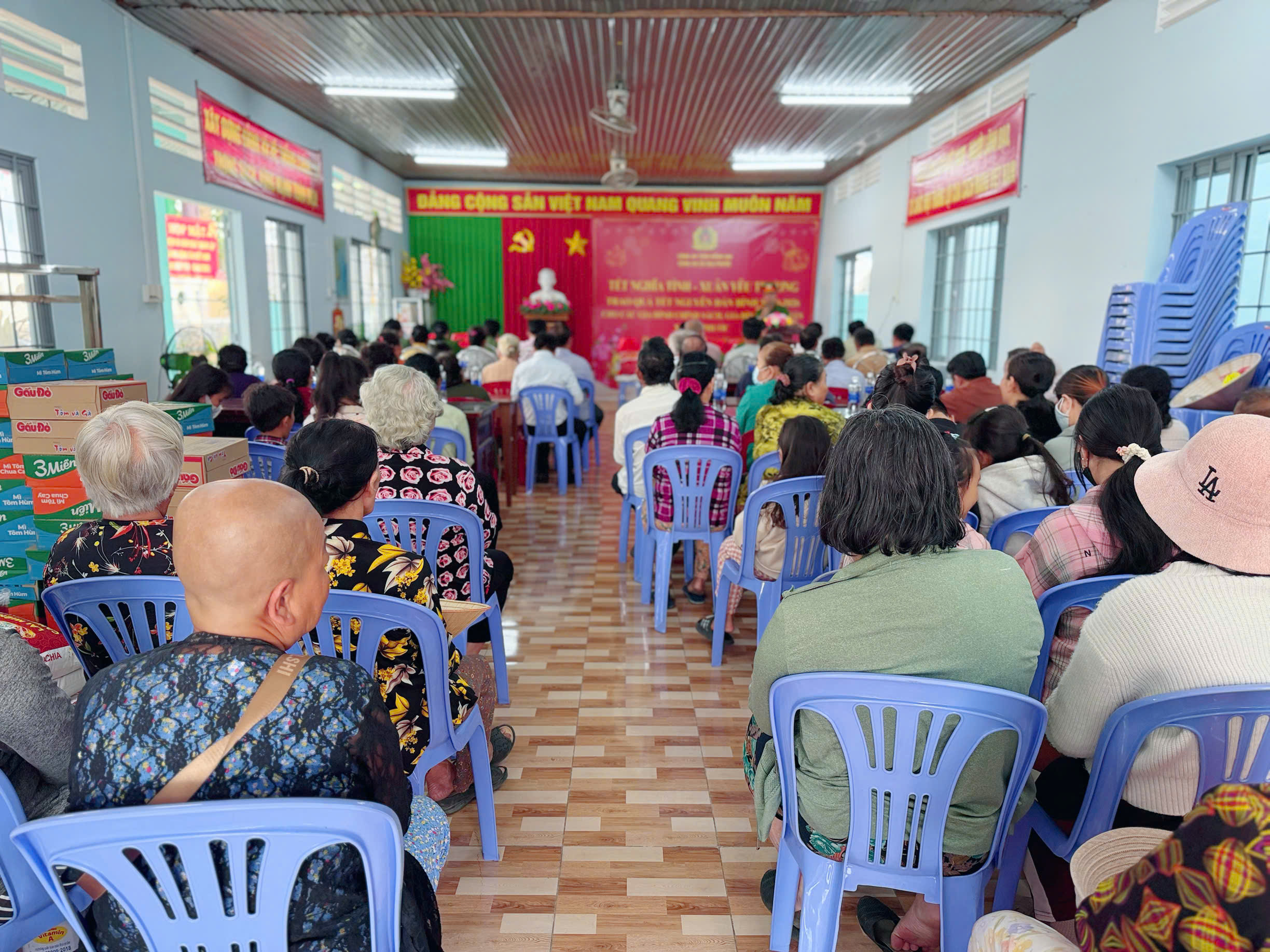 Chiều ngày 30/01/2026, tại Nhà văn hóa ấp 2, Công an xã Đại Phước phối hợp với cấp ủy, chính quyền địa phương và các mạnh thường quân tổ chức chương trình tuyên truyền pháp luật kết hợp trao quà Tết cho các gia đình chính sách, hộ nghèo và các trường hợp có hoàn cảnh khó khăn trên địa bàn xã.