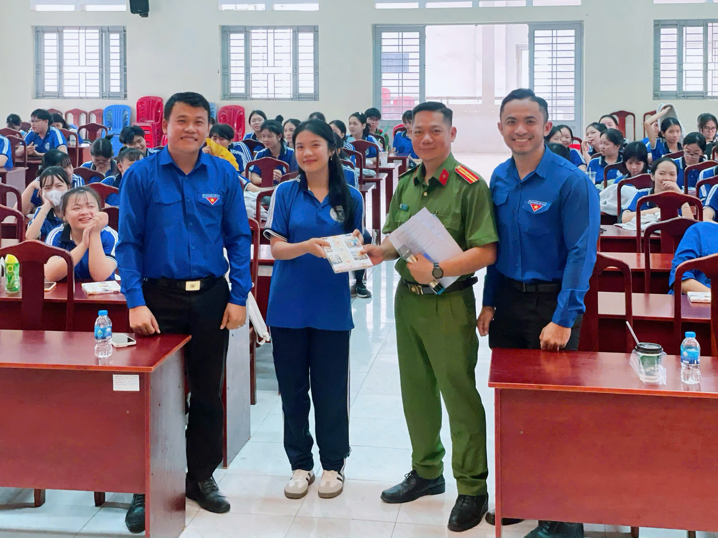 Công an xã Đại Phước phối hợp cùng Ban Giám hiệu Trường THCS Dương Văn Thì tổ chức tuyên truyền pháp luật cho học sinh