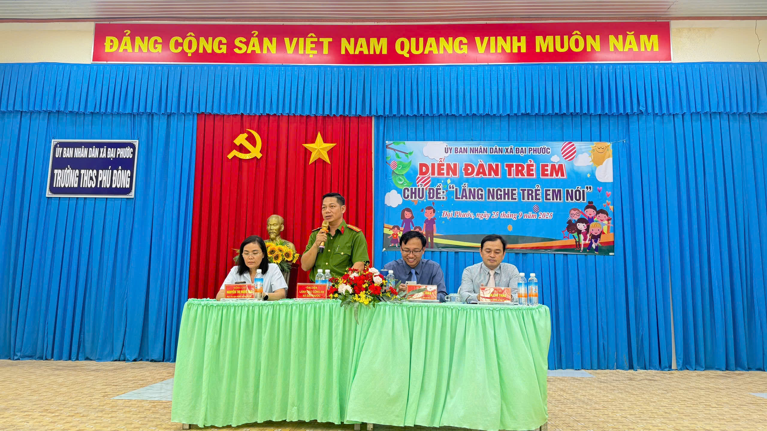 Sự hiện diện của Công an xã tại diễn đàn không chỉ thể hiện trách nhiệm trong công tác bảo vệ, chăm sóc trẻ em, mà còn khẳng định vai trò người bạn đồng hành đáng tin cậy của thế hệ trẻ. Qua đó, lực lượng Công an xã vừa tuyên truyền pháp luật, vừa trực tiếp lắng nghe tâm tư, nguyện vọng của các em, giúp định hướng nhận thức, hình thành kỹ năng sống lành mạnh và an toàn.