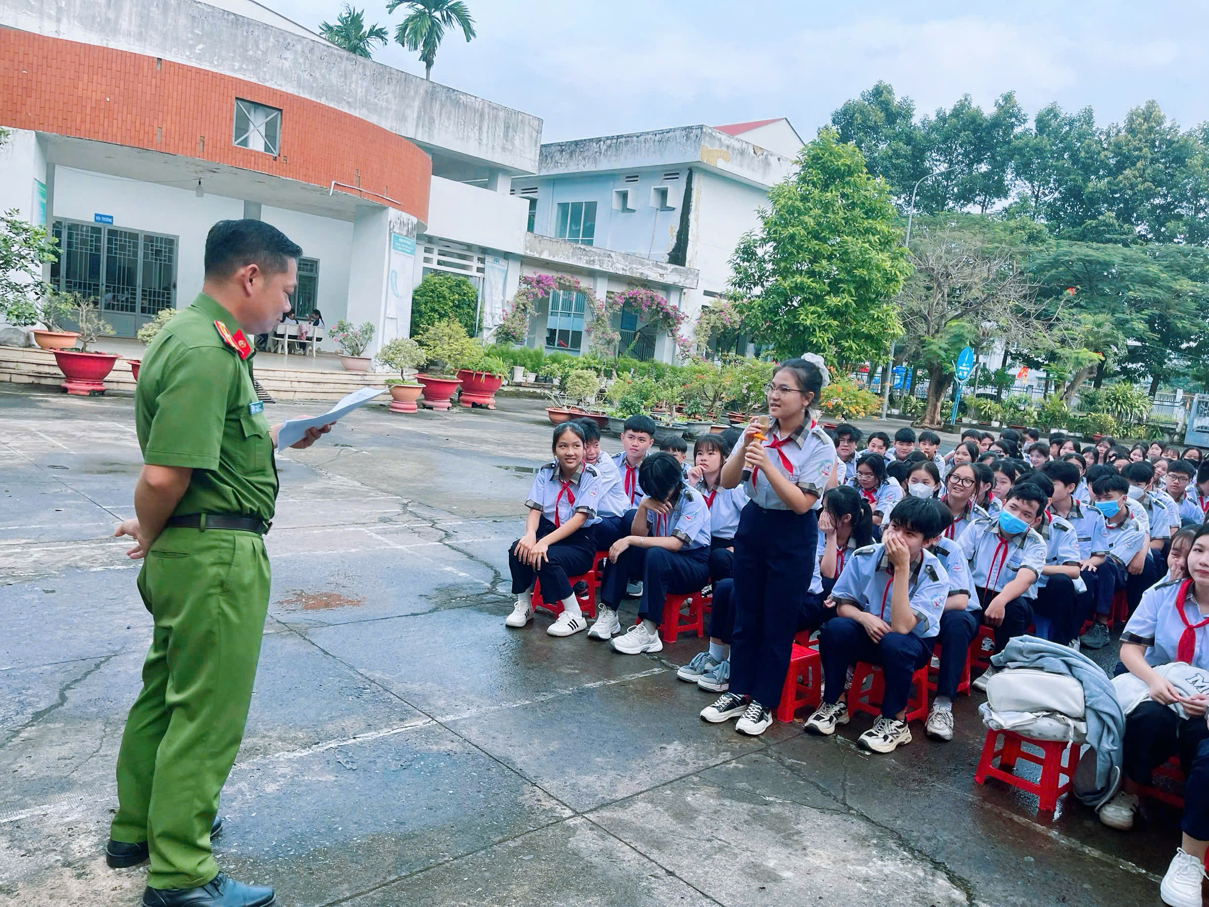 Đặc biệt, buổi tuyên truyền được tổ chức theo hình thức tương tác, đặt câu hỏi – xử lý tình huống, giúp học sinh dễ tiếp thu, hiểu sâu và có phản ứng đúng đắn khi gặp các tình huống thực tế như bị rủ rê, lôi kéo sử dụng thử chất kích thích hoặc thuốc lá điện tử.