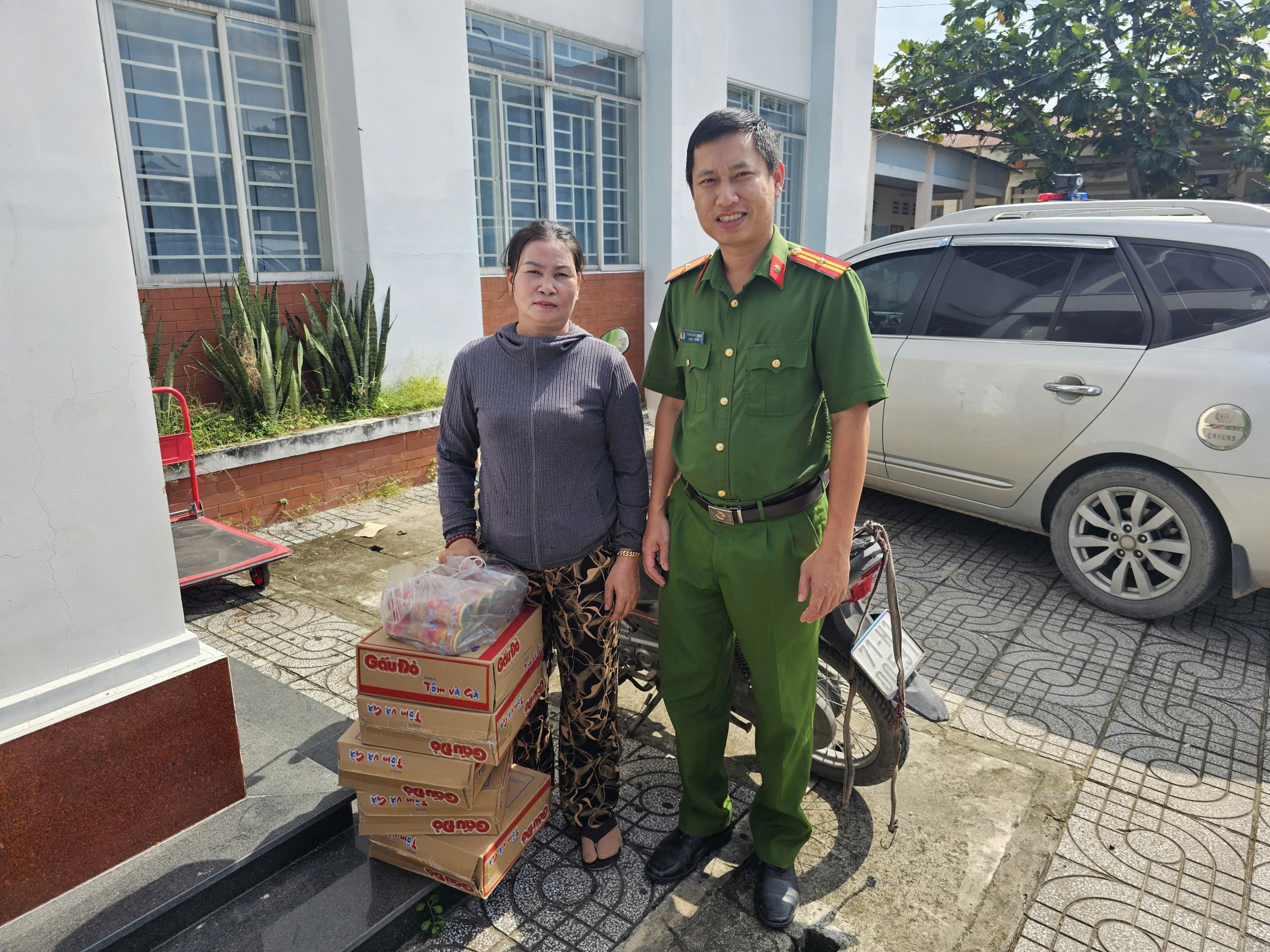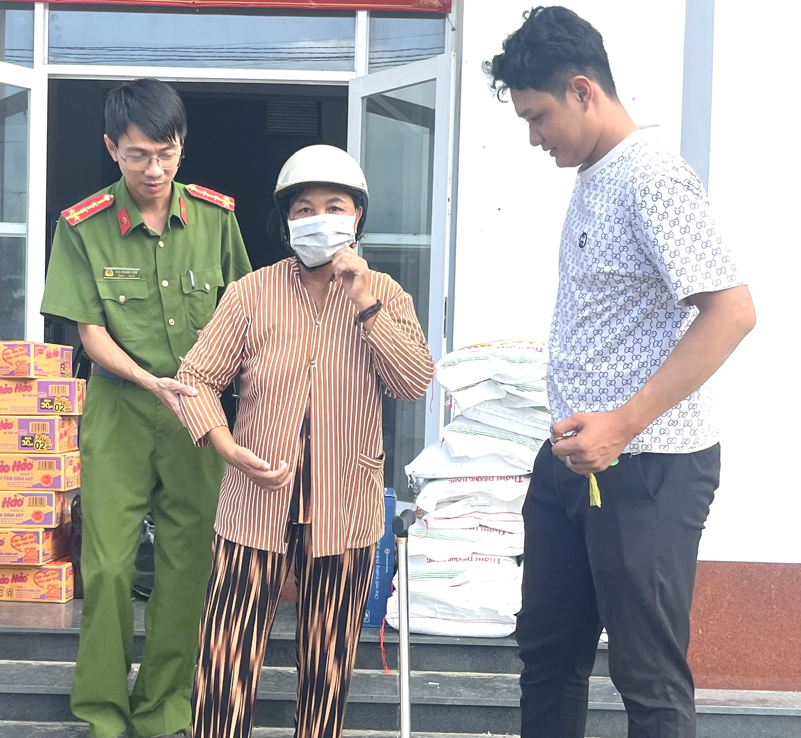 Đặc biệt, trong số bà con đến ủng hộ có cô Nguyễn Thị Hoa, ngụ ấp Thị Cầu. Dù đang điều trị tai biến và sức khỏe còn nhiều hạn chế, cô vẫn cố gắng nhờ người thân đưa đến trụ sở Công an xã để trực tiếp gửi phần quà sẻ chia với đồng bào vùng lũ.