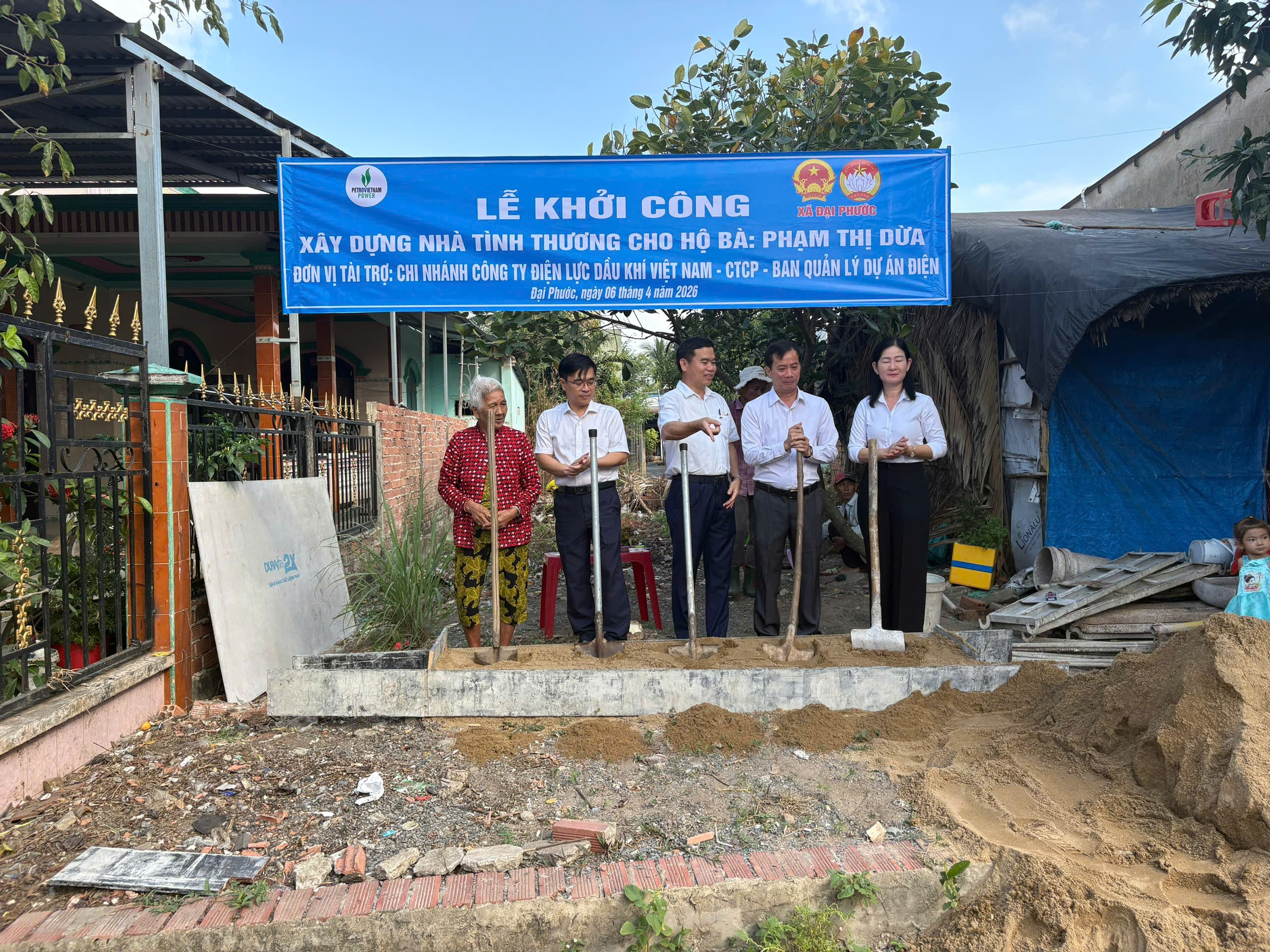 Gia đình bà Phạm Thị Dừa (ngụ tại tổ 10, ấp Bến Ngự) thuộc diện hộ nghèo, hộ khó khăn về nhà ở. Tại buổi lễ, đại diện đơn vị tài trợ đã trao bảng tượng trưng hỗ trợ kinh phí xây dựng nhà với số tiền là 65.000.000 đồng. Dự kiến công trình hoàn thành trong tháng 4/2026. Thay mặt đơn vị tài trợ, ông Nguyễn Tiến Hưng đã phát biểu chia sẻ về ý nghĩa của công trình và mong muốn góp phần cùng địa phương xã Đại Phước thực hiện tốt công tác an sinh xã hội, công tác chăm lo các hộ gia đình khó khăn về nhà ở, được ổn định cuộc sống.