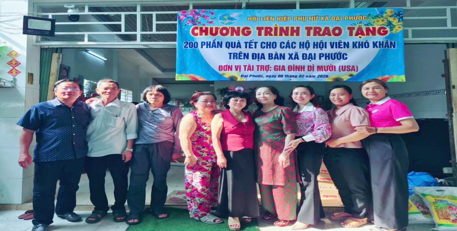 Hòa chung không khí vui tươi, phấn khởi chào mừng thành công của Đại hội đại biểu toàn quốc lần thứ XIV của Đảng và hướng tới cuộc bầu cử đại biểu Quốc hội Việt Nam khóa XVI, đại biểu Hội đồng nhân dân các cấp nhiệm kỳ 2026 – 2031, những ngày qua, Hội Liên hiệp Phụ nữ xã Đại Phước đã sôi nổi tổ chức và tham gia nhiều hoạt động ý nghĩa với chủ đề “Tết sẻ chia – Tết kết nối yêu thương” với 1.094 phần quà/547.000.000đ (mỗi phần quà trị giá 500.000đ)