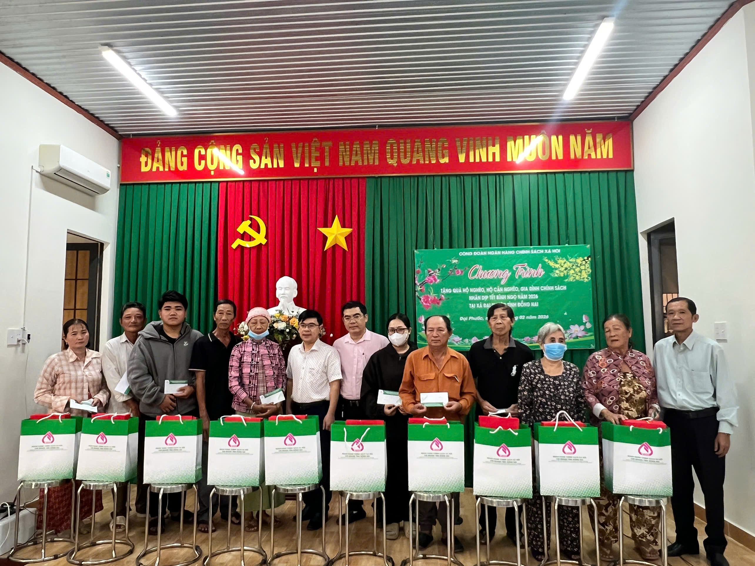 Ngày 03/02/2026, Phòng giao dịch Ngân hàng Chính sách xã hội (NHCSXH) Nhơn Trạch tổ chức phiên giao dịch bù tại xã Đại Phước nhân dịp Tết Bính Ngọ năm 2026. Nhân dịp này, Phòng giao dịch đã phối hợp với chính quyền địa phương tổ chức trao tặng quà Tết cho các hộ nghèo, hộ cận nghèo và gia đình chính sách trên địa bàn xã.
