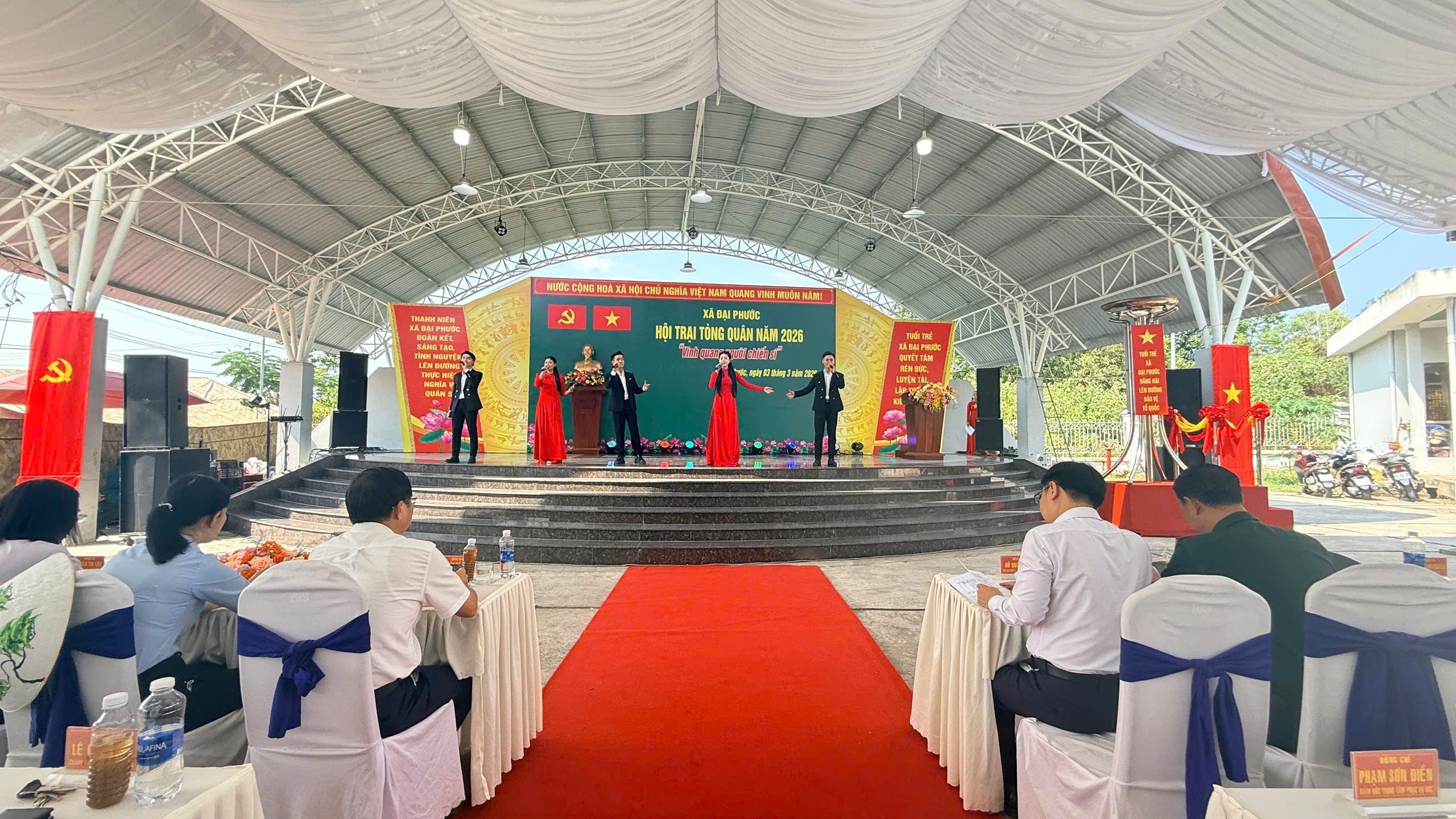 Hội trại diễn ra trong không khí trang trọng, ấm áp và đầy khí thế với sự tham dự của lãnh đạo Đảng ủy, HĐND, UBND, Ủy ban MTTQ Việt Nam xã, các đồng chí UVBTV, ĐUV, lãnh đạo các ban ngành, đoàn thể xã, cùng đông đảo đoàn viên thanh niên và nhân dân trên địa bàn xã. Đặc biệt là sự có mặt của 95 bạn thanh niên trúng tuyển nghĩa vụ quân sự năm 2026 – những người con ưu tú của quê hương Đại Phước khoác lên mình màu áo lính, tiếp bước truyền thống anh hùng của các thế hệ cha anh đi trước.