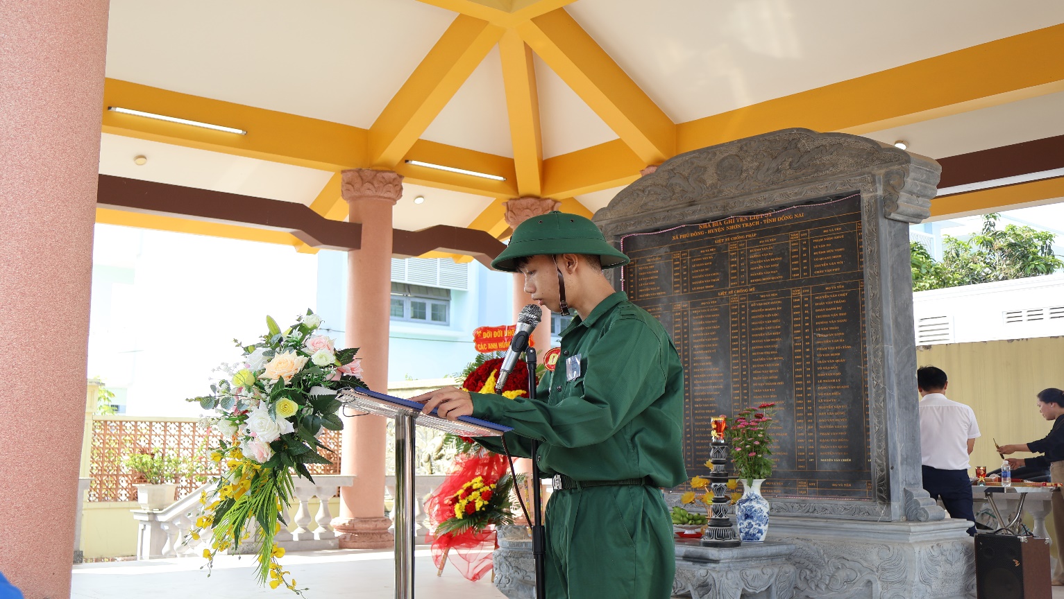 Hội trại Tòng quân năm nay được tổ chức với nhiều nội dung phong phú, mang đậm ý nghĩa giáo dục truyền thống. Buổi sáng các bạn Tân binh dâng hương tại nhà bia Liệt sỹ ấp Giồng Ông Đông, tại lễ dâng hương tưởng nhớ đến Anh Linh Chủ tịch Hồ Chí Minh và các anh hùng liệt sỹ, những người đã hy sinh thân mình vì độc lập tự do của dân tộc, đây là một hoạt động giáo dục tinh thần yêu nước, truyền thống “Uống nước nhớ nguồn – Ăn quả nhớ Người trồng cây” của dân tộc ta. Tại lễ dâng hương đồng chí Đảng viên trẻ Lê Thanh Tùng đã có lời phát biểu cảm nghĩ của Đảng viên trẻ lên đường nhập ngũ.