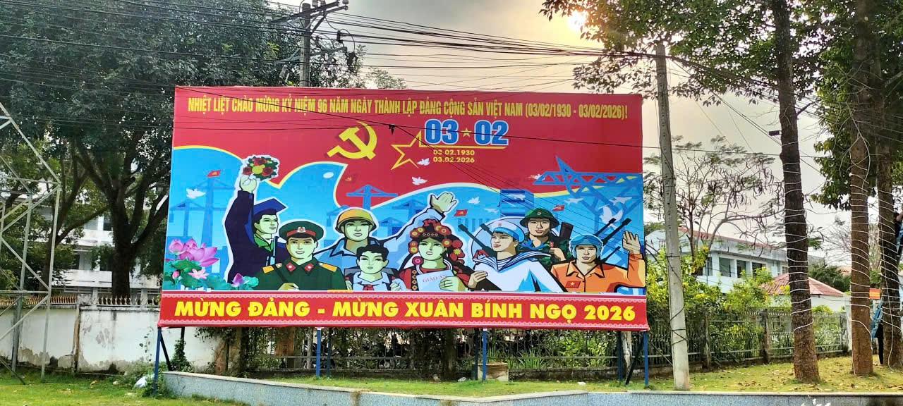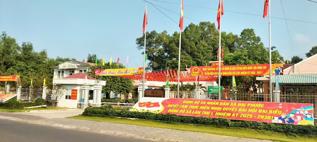 Hệ thống băng rôn, pano, cờ Tổ quốc, cờ phướn, khẩu hiệu chào mừng năm mới được treo trang trọng, đúng quy định, các cụm trang trí được bố trí hài hòa, phù hợp với cảnh quan chung. Nội dung tuyên truyền tập Chào mừng Tết Nguyên đán Bính Ngọ năm 2026, Hướng tới Kỷ niệm 96 năm Thành lập Đảng cộng sản Việt Nam (03/02/1930 – 03/02/2016), ca ngợi Đảng, Bác Hồ, quê hương, đất nước, cổ vũ tinh thần thi đua lao động, sản xuất, xây dựng nông thôn mới và đời sống văn hóa ở khu dân cư trên địa bàn xã Đại Phước.