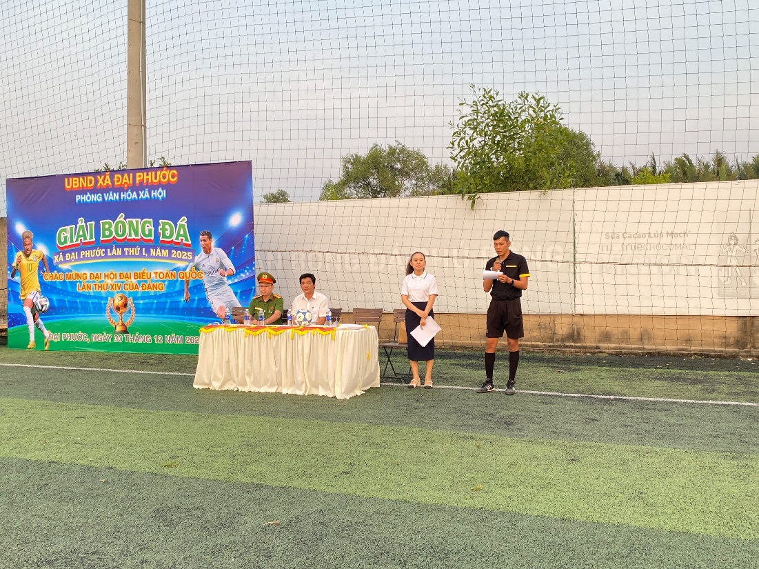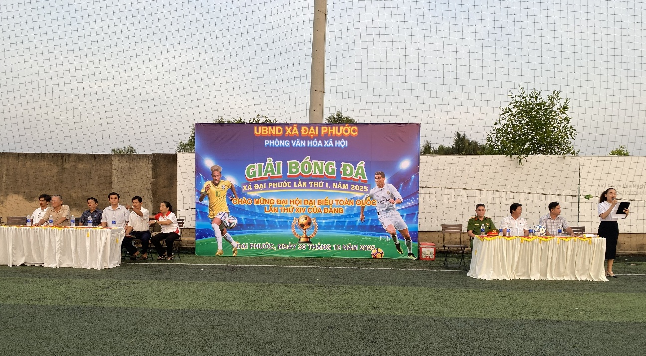 Giải Bóng đá xã Đại Phước lần thứ I năm 2025 thu hút sự tham gia của 14 đội bóng, với lực lượng vận động viên đến từ các ấp, cơ quan, đơn vị trên địa bàn xã, hứa hẹn mang đến những trận đấu sôi nổi, hấp dẫn và giàu tính cống hiến.Giải đấu còn là hoạt động thể thao ý nghĩa, góp phần nâng cao đời sống văn hóa tinh thần cho nhân dân, đồng thời thể hiện khí thế thi đua sôi nổi của địa phương hướng về Đại hội đại biểu toàn quốc lần thứ XIV của Đảng.