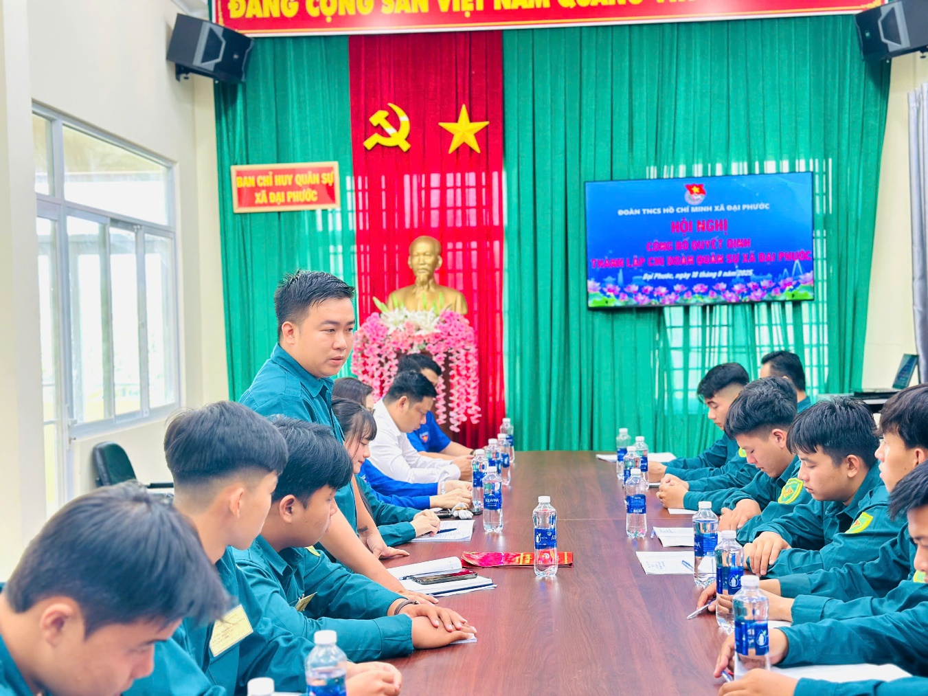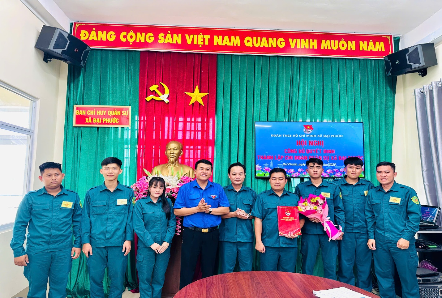 Chiều ngày 18/9/2025, tại Hội trường Ban Chỉ huy Quân sự xã Đại Phước, Ban Thường vụ Đoàn xã Đại Phước long trọng tổ chức Lễ công bố quyết định Chi đoàn Quân sự xã Đại Phước. Tham dự buổi Lễ có đồng chí Huỳnh Công Phú – ĐUV – Phó Chủ tịch UBMTTQ Việt Nam xã – Bí thư Đoàn TNCS Hồ Chí Minh xã Đại Phước; Đ/c Trương Quốc Hùng – ĐUV – Phó Chỉ Huy trưởng BCH Quân sự xã cùng với các đồng chí BTV Đoàn xã, BCH Chi đoàn Quân sự xã.