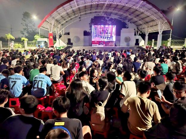 Đoàn viên thanh niên tham gia hỗ trợ trước giờ chiếu phim