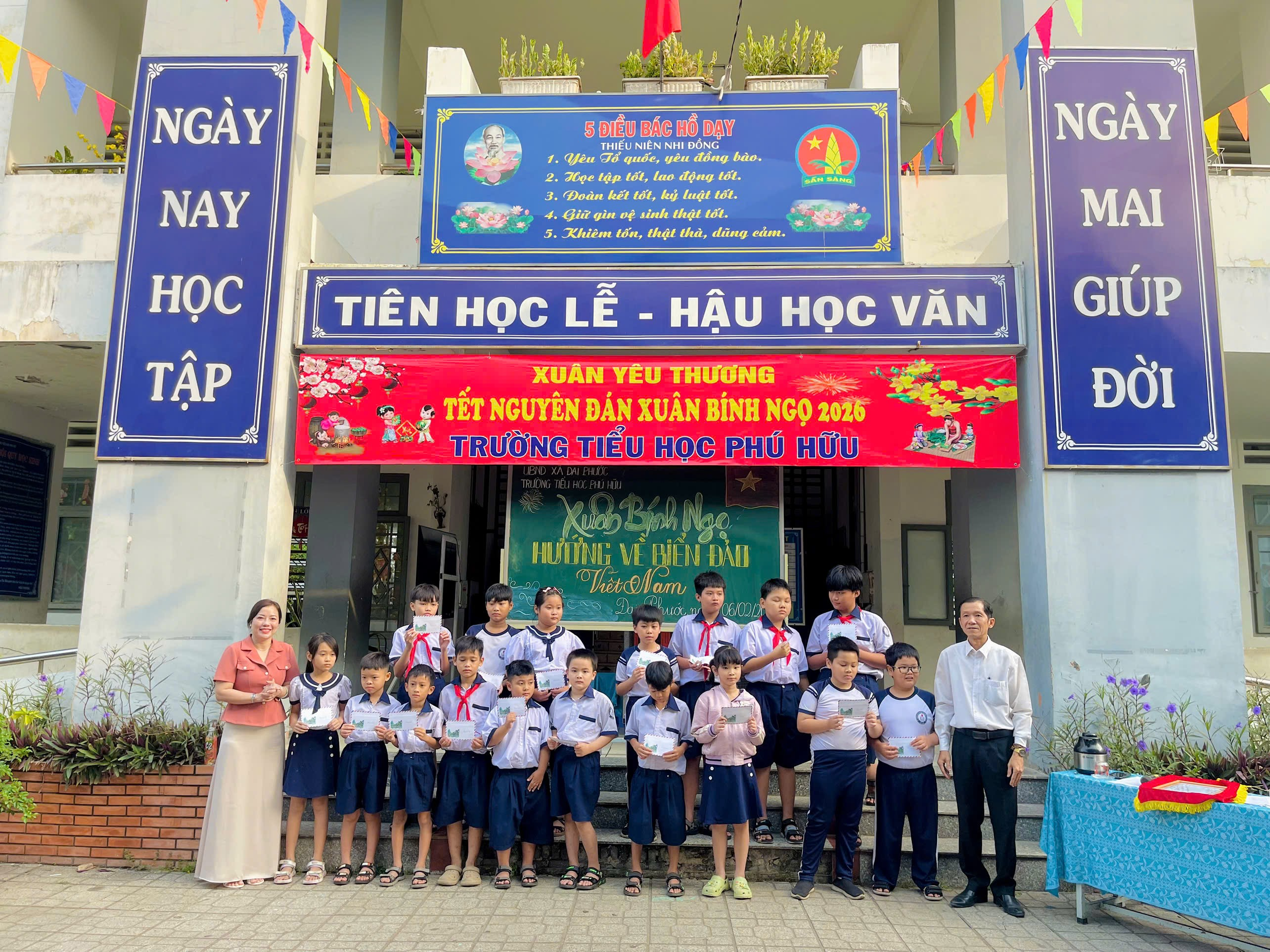 Sáng ngày 6/2/2026, Nhân dịp Tết Bính Ngọ và hưởng ứng chương trình “Xuân hướng về biển đảo” năm 2026, Hội Nông dân xã phối hợp cùng Ban giám hiệu trường tiểu học Phú Hữu đã tổ chức trao 17 phần học bổng với tổng trị giá 8,5 triệu đồng cho các em học sinh là con em hội viên có hoàn cảnh khó khăn, nỗ lực vươn lên trong học tập. Chương trình có sự tham dự của đồng chí Nguyễn Thanh Hòa – Phó Chủ tịch Thường trực Ủy ban MTTQ Việt Nam xã, Chủ tịch Hội Nông dân xã; đồng chí Đoàn Minh Lẹ – Ủy viên Thường vụ Hội Nông dân xã; cùng đồng chí Đào Thị Thùy Trang – Hiệu trưởng Trường Tiểu học Phú Hữu. Các phần học bổng được trao tận tay các em như một lời động viên kịp thời trước thềm năm mới.