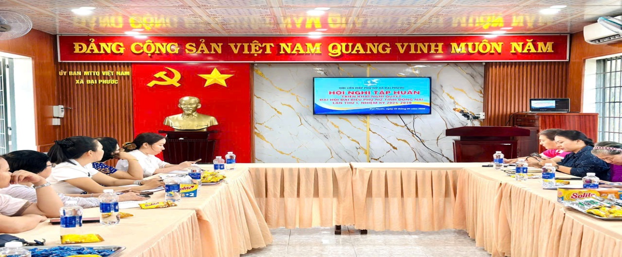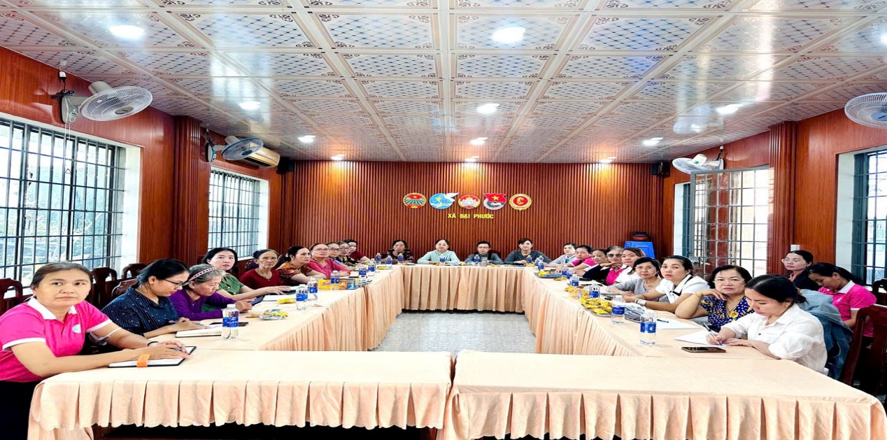 Tham dự hội nghị tại điểm cầu xã Đại Phước có 39 đồng chí trong BTV, Ban Chấp hành Hội LHPN xã, các cô, chị Chi hội Trưởng, phó Chi hội Phụ nữ các ấp trên địa bàn xã. Hội nghị được triển khai với 02 chuyên đề trọng tâm: